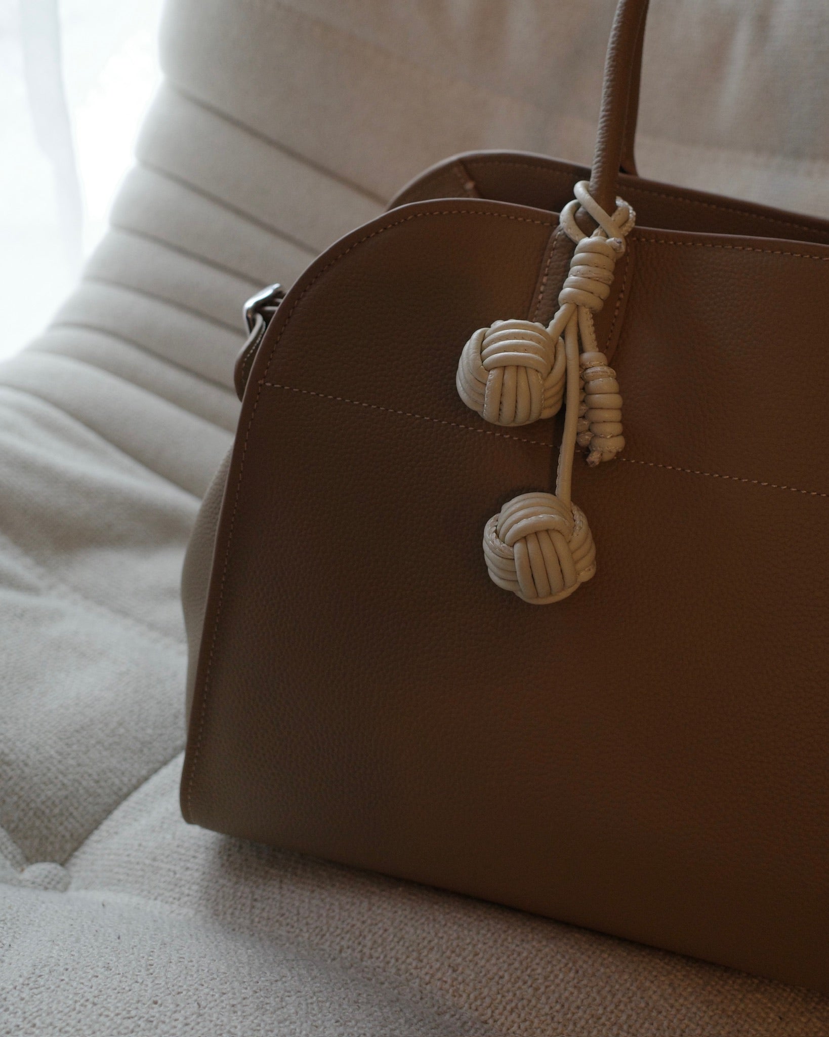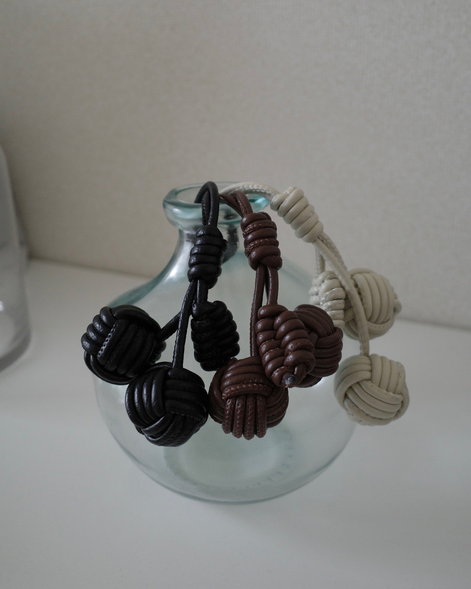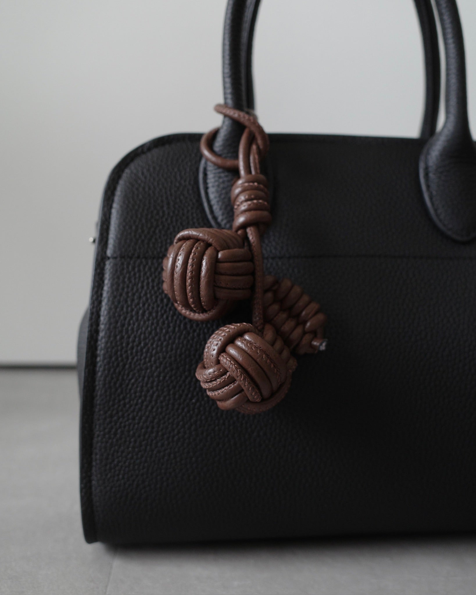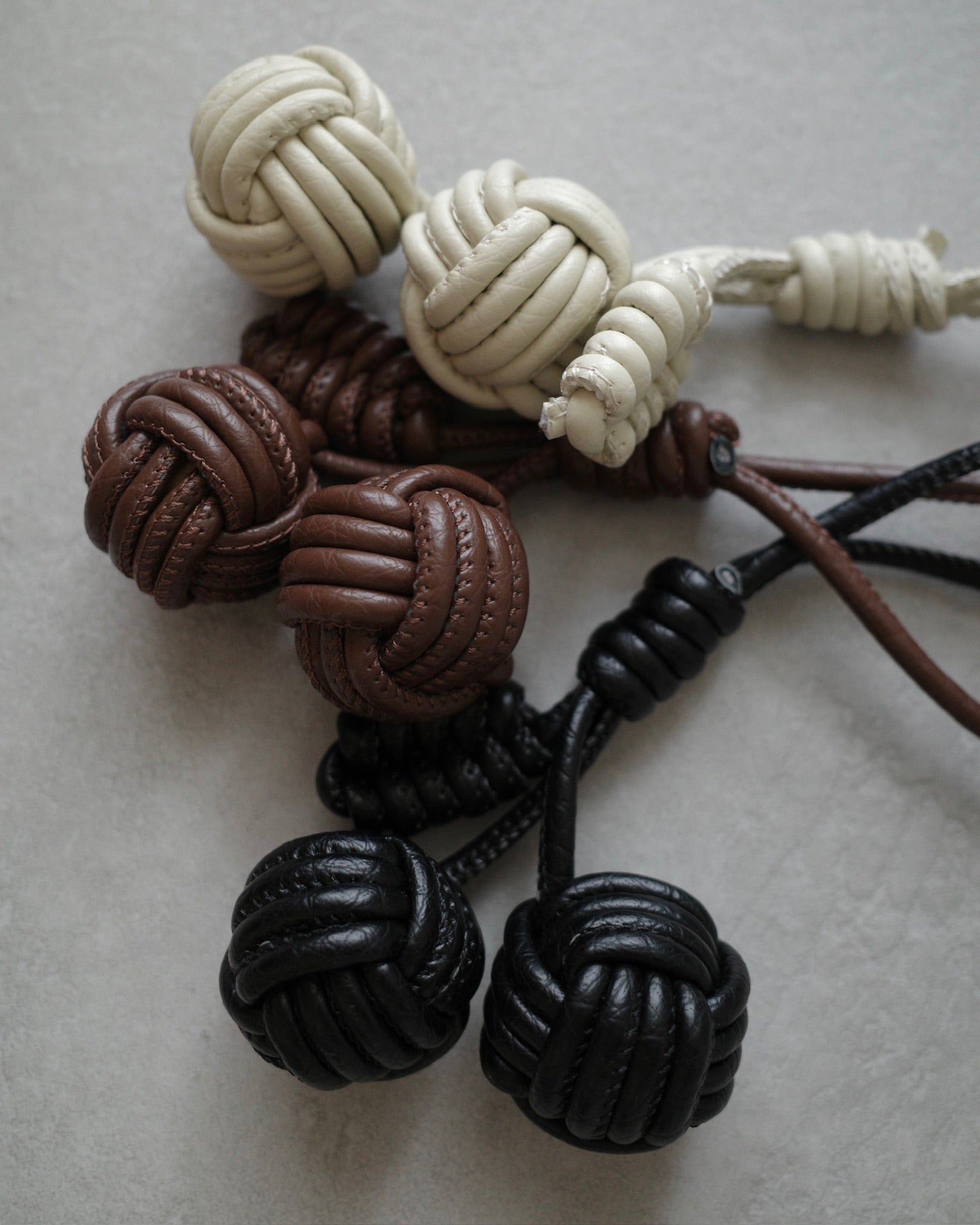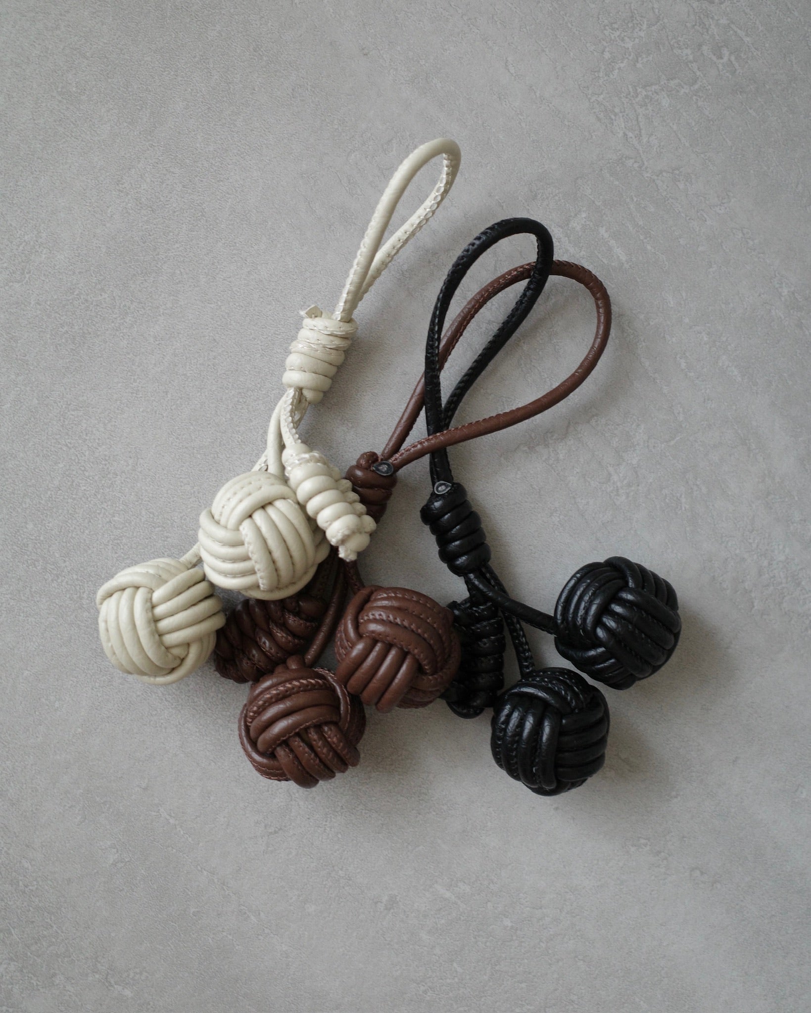 ラウンド編み込みデザインが印象的な、ツインオーブフェイクレザーチャーム。丸みのあるフォルムとレザーの風合いが、バッグや鍵にエッジをプラス。自然に馴染む落ち着いたカラー展開も魅力です。パラコードチャームなど、他のチャームと合わせてオリジナルな組み合わせを楽しんで頂くのもおすすめです。