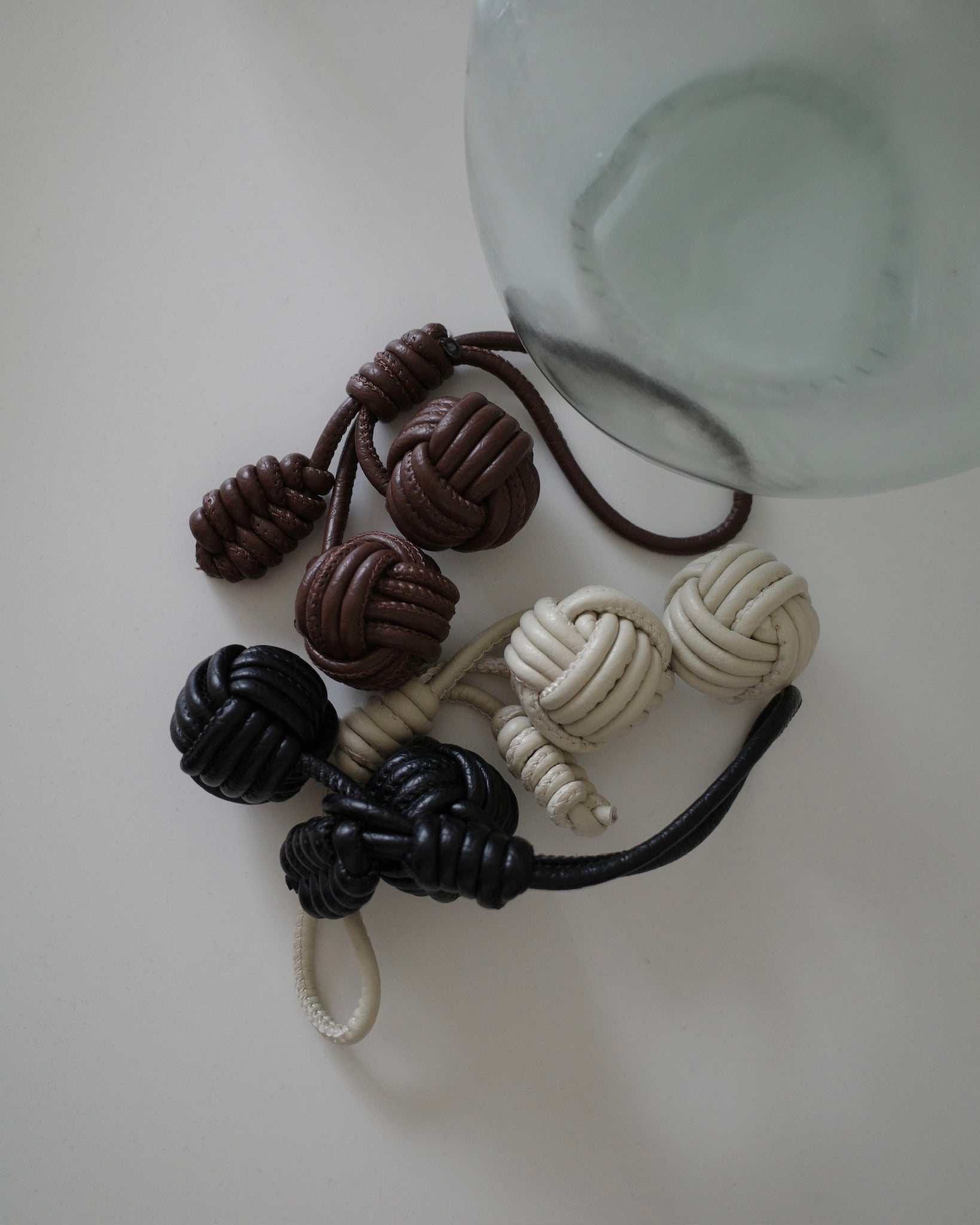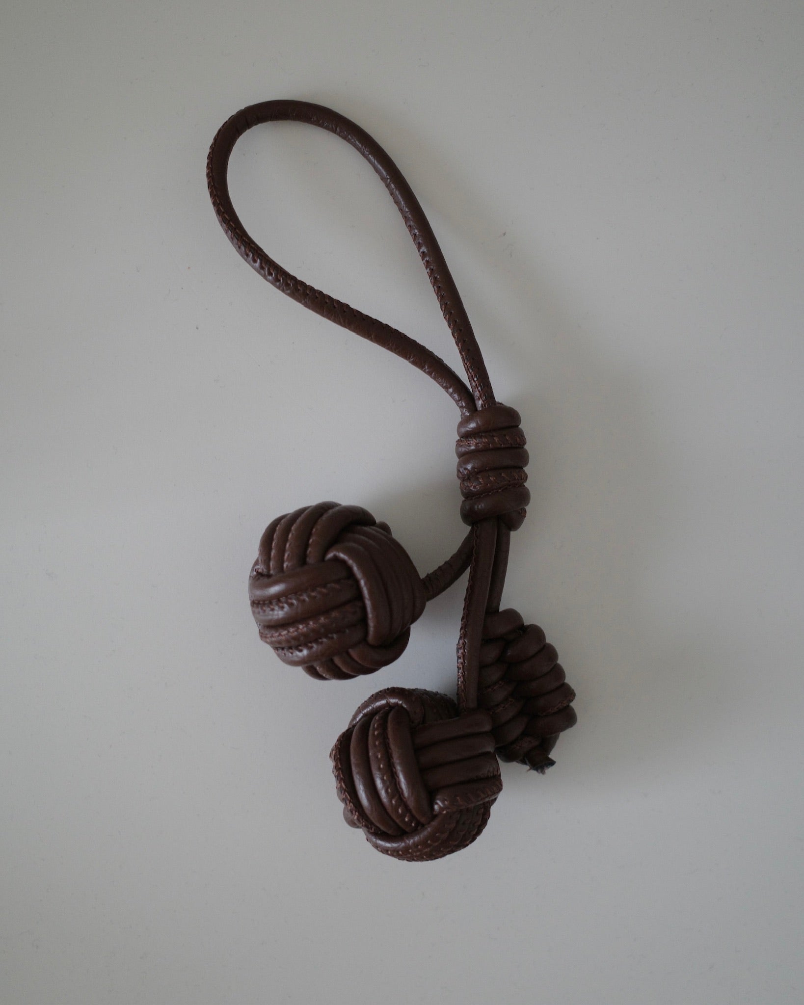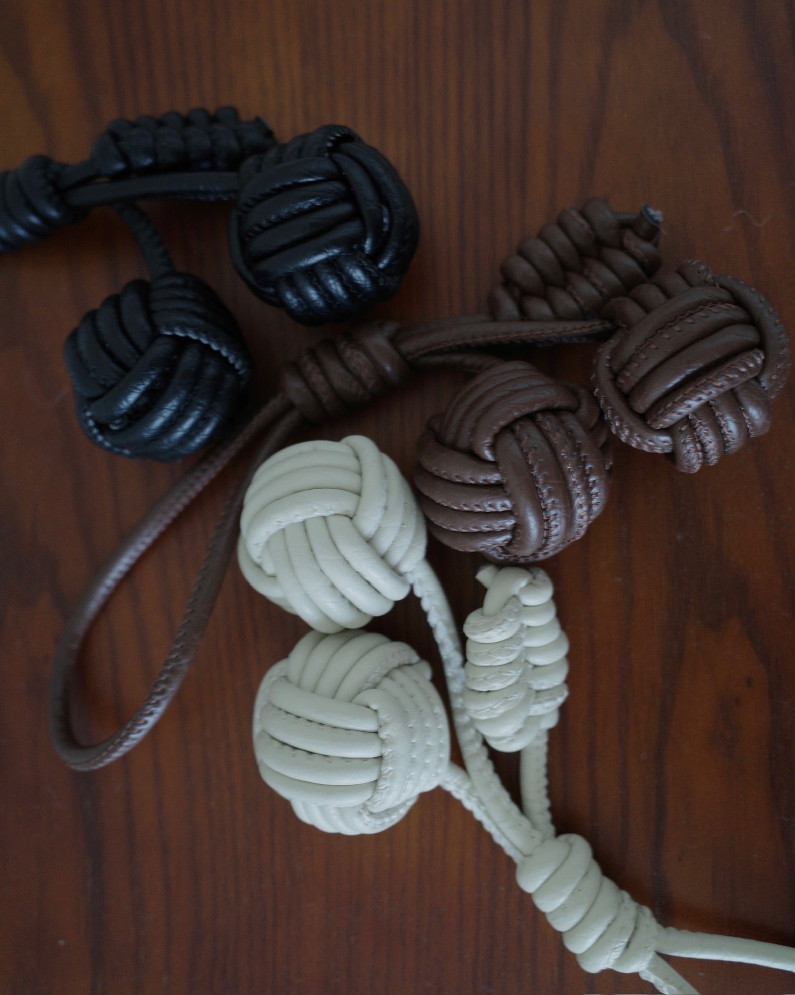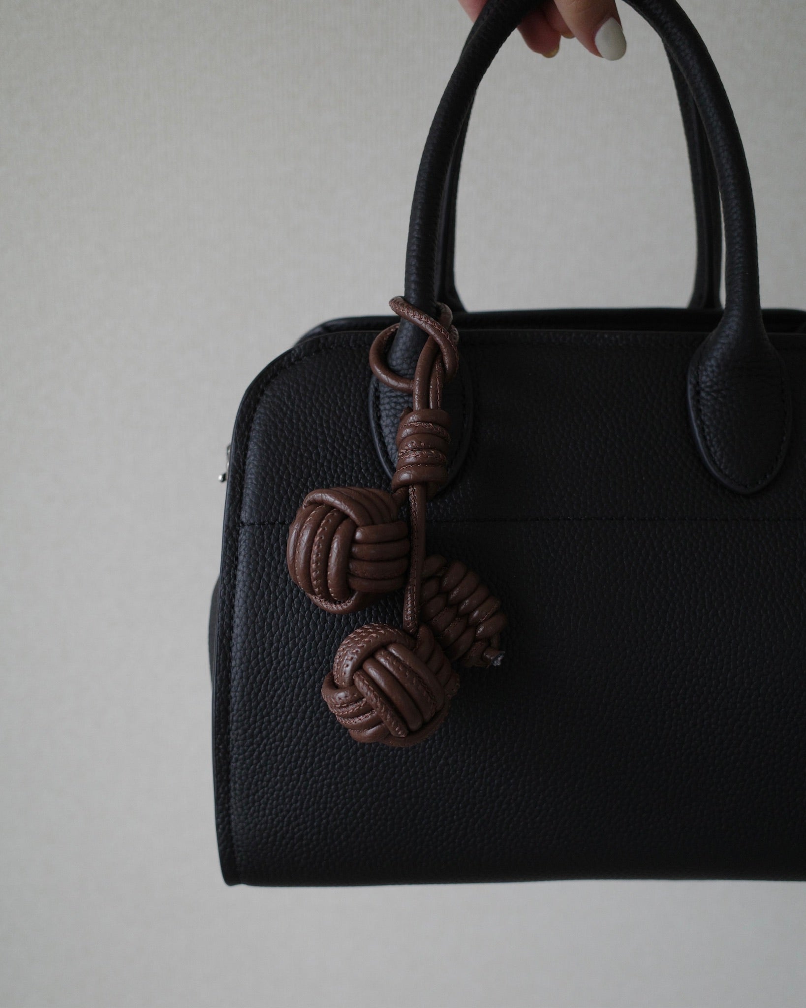 ラウンド編み込みデザインが印象的な、ツインオーブフェイクレザーチャーム。丸みのあるフォルムとレザーの風合いが、バッグや鍵にエッジをプラス。自然に馴染む落ち着いたカラー展開も魅力です。パラコードチャームなど、他のチャームと合わせてオリジナルな組み合わせを楽しんで頂くのもおすすめです。