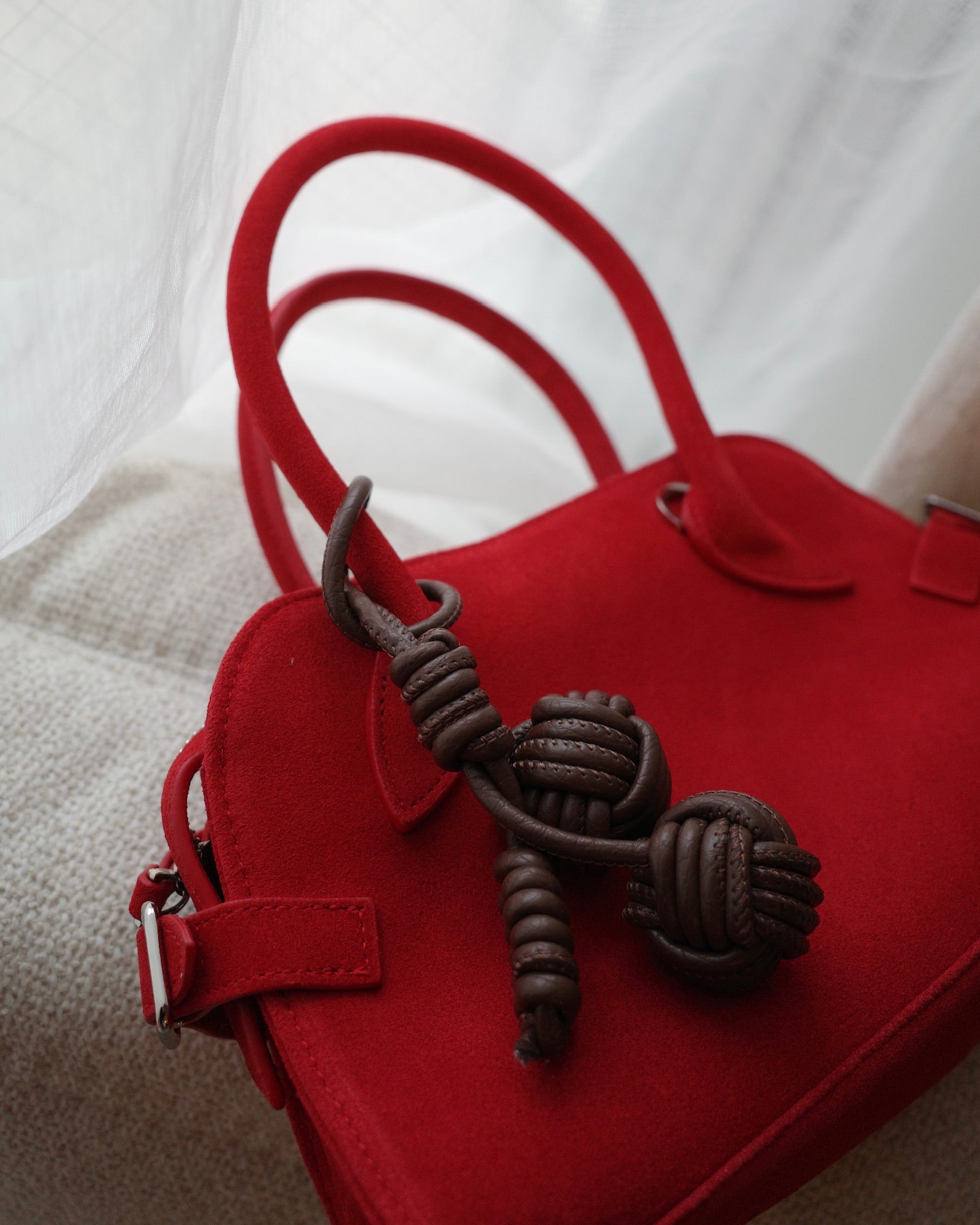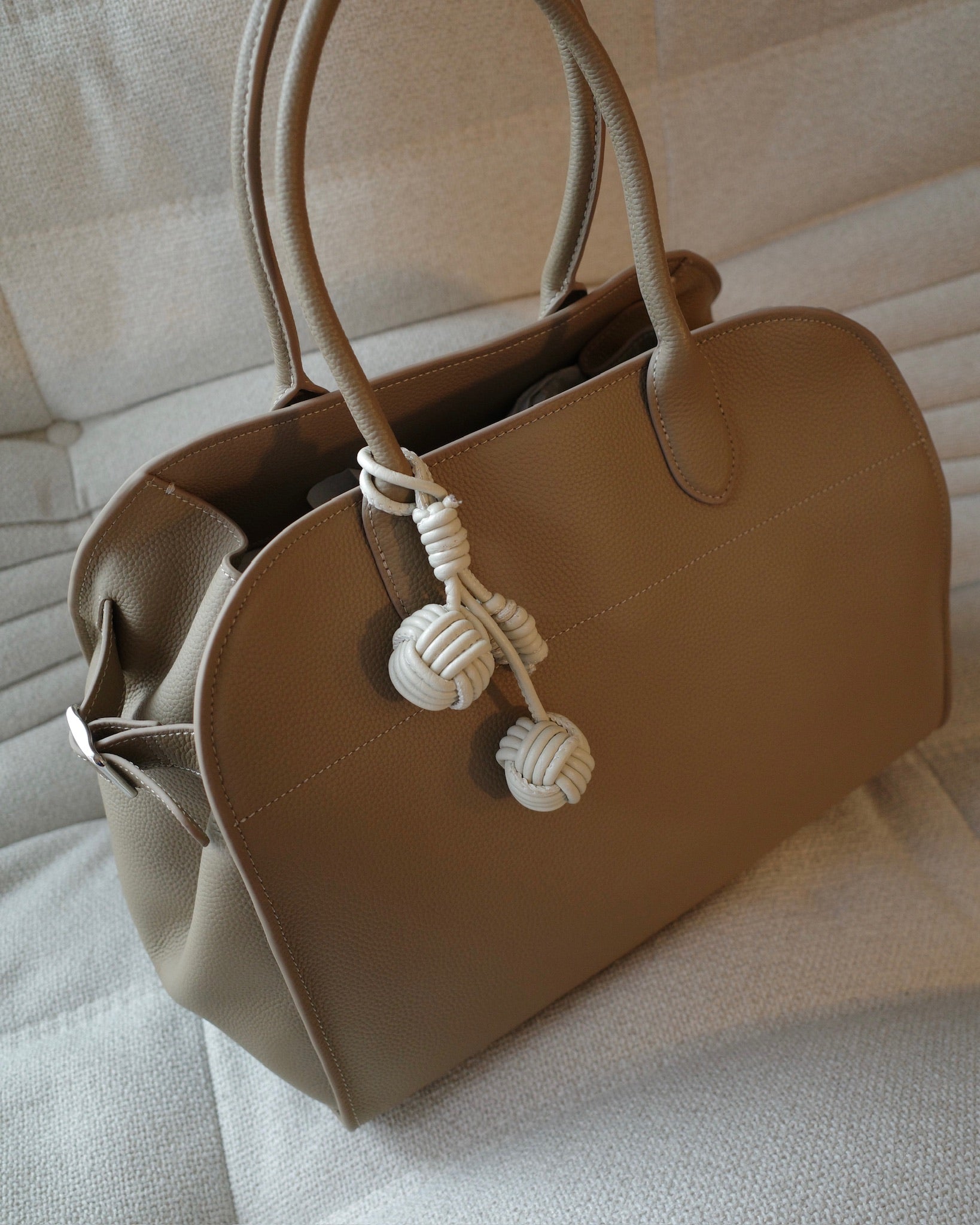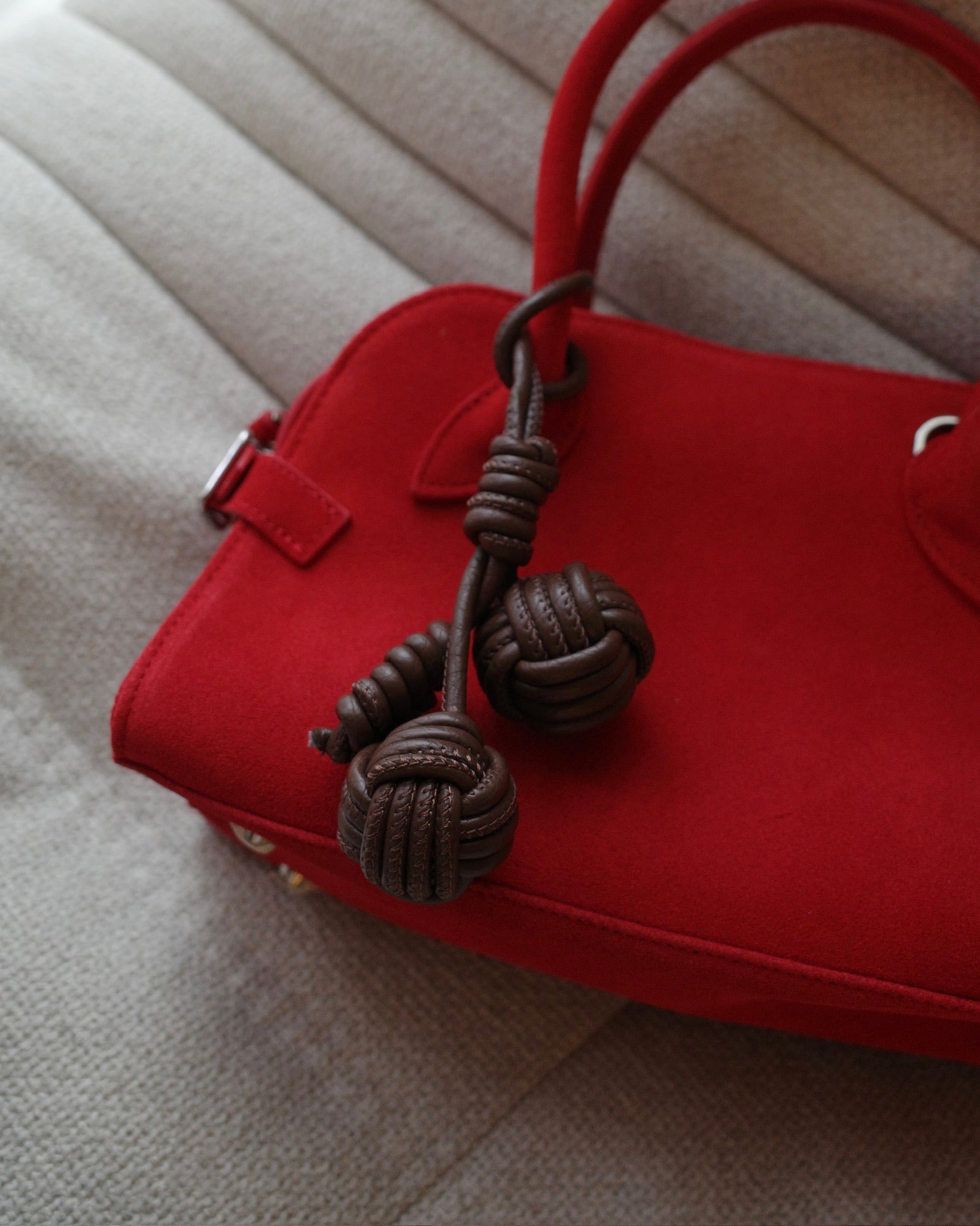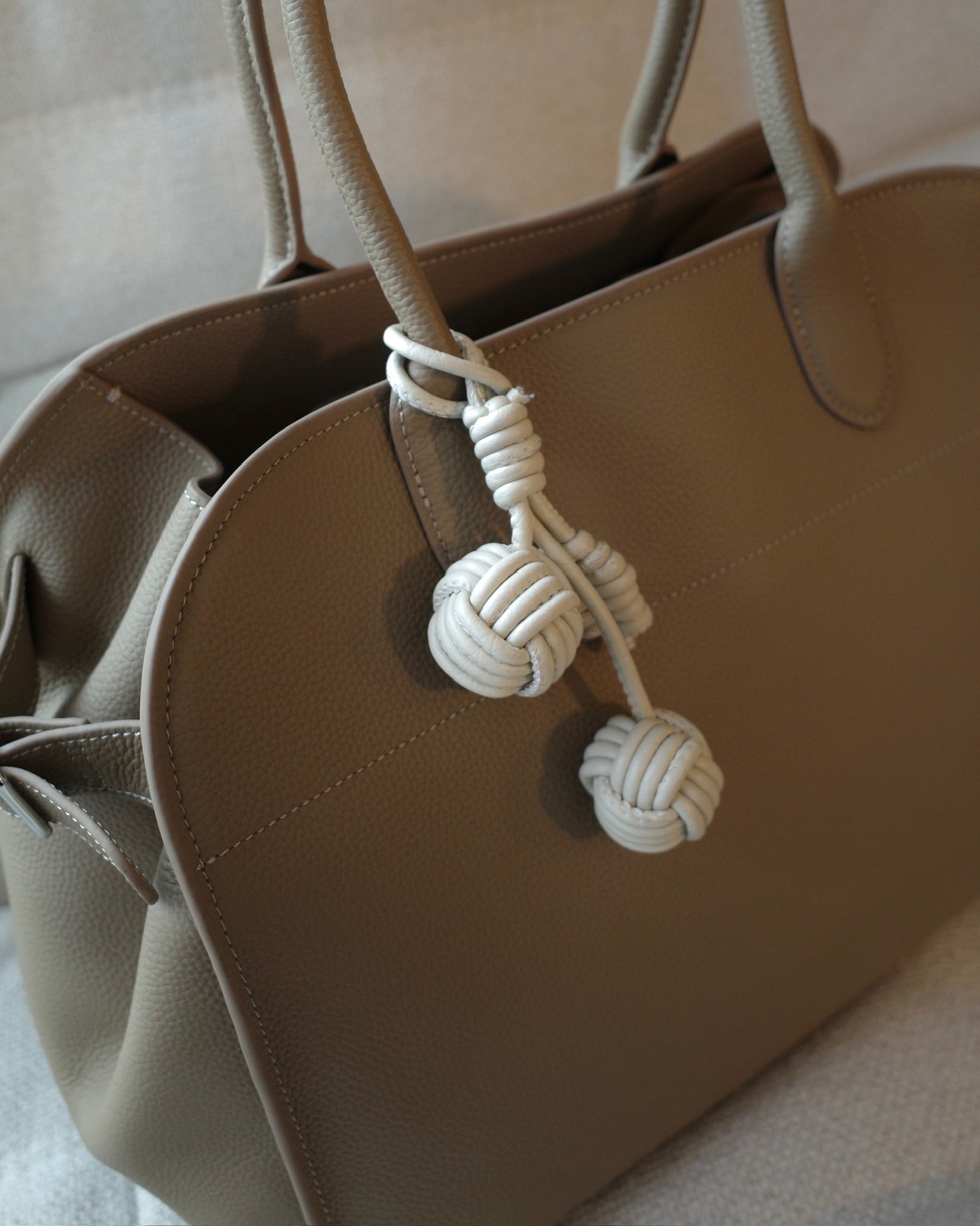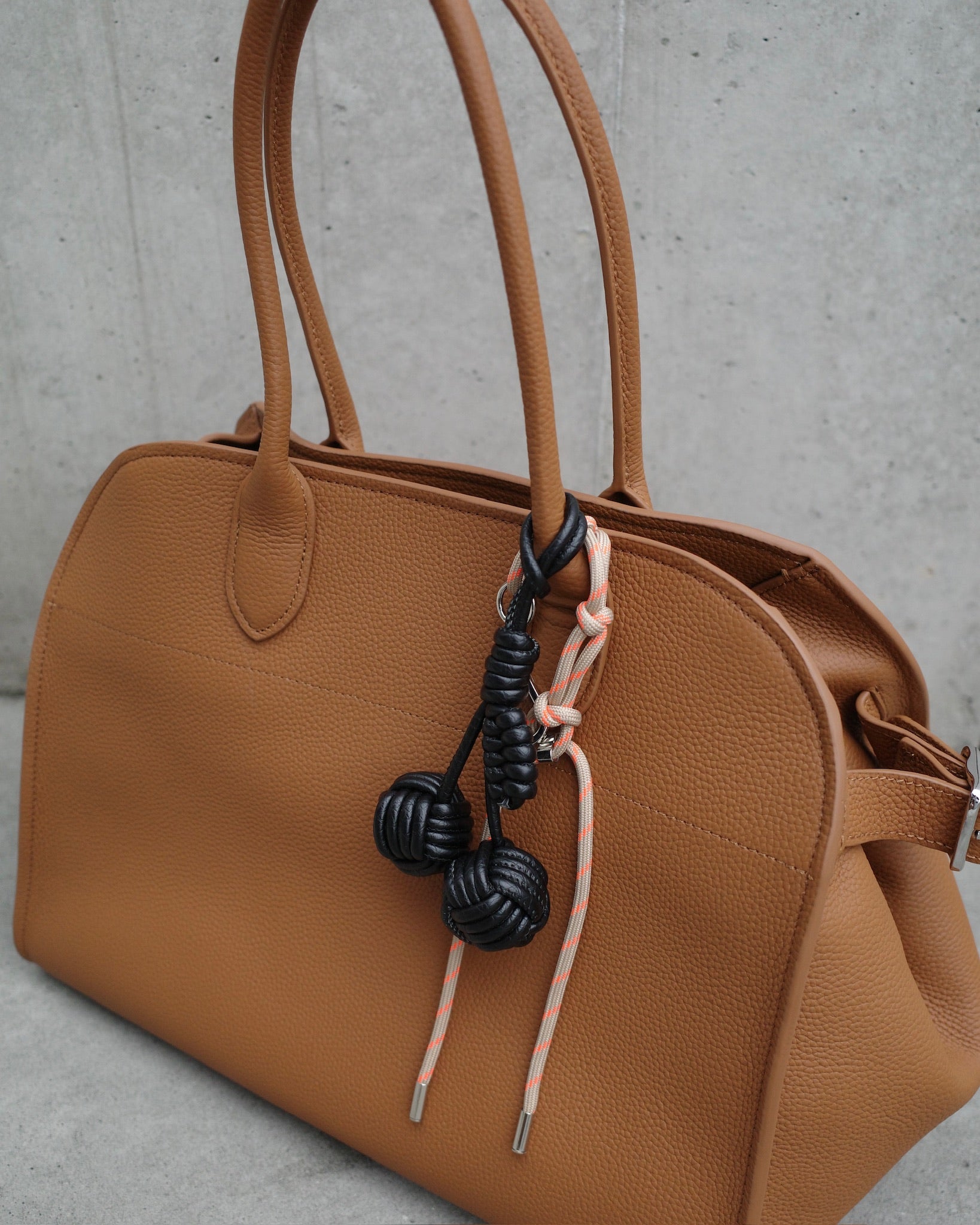 ラウンド編み込みデザインが印象的な、ツインオーブフェイクレザーチャーム。丸みのあるフォルムとレザーの風合いが、バッグや鍵にエッジをプラス。自然に馴染む落ち着いたカラー展開も魅力です。パラコードチャームなど、他のチャームと合わせてオリジナルな組み合わせを楽しんで頂くのもおすすめです。