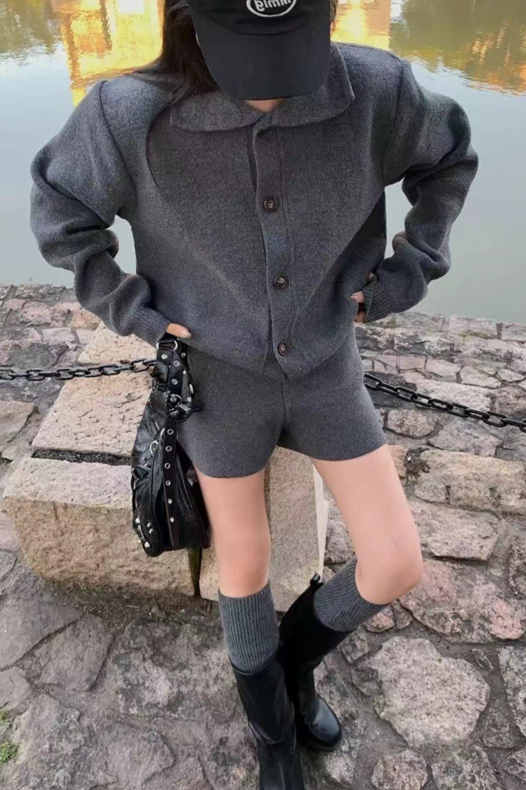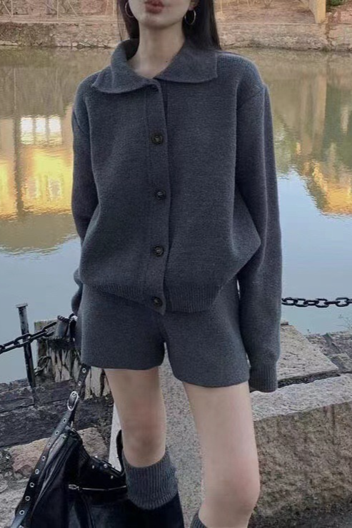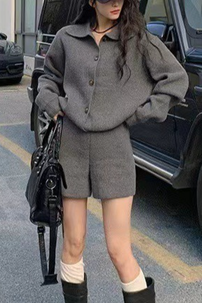 柔らかい質感のニットで仕立てたトップスとショートパンツのセットアップ。襟付きトップスは、羽織りとしてもプルオーバーとしても着られる万能デザイン。ショートパンツはウエストゴムで快適な着心地ながら、同素材でまとめることで上品な印象に。シンプルな中にも大人らしい抜け感があり、デイリー使いからお出かけまで幅広く活躍するアイテムです。ロングブーツとのスタイリングもおすすめです。
