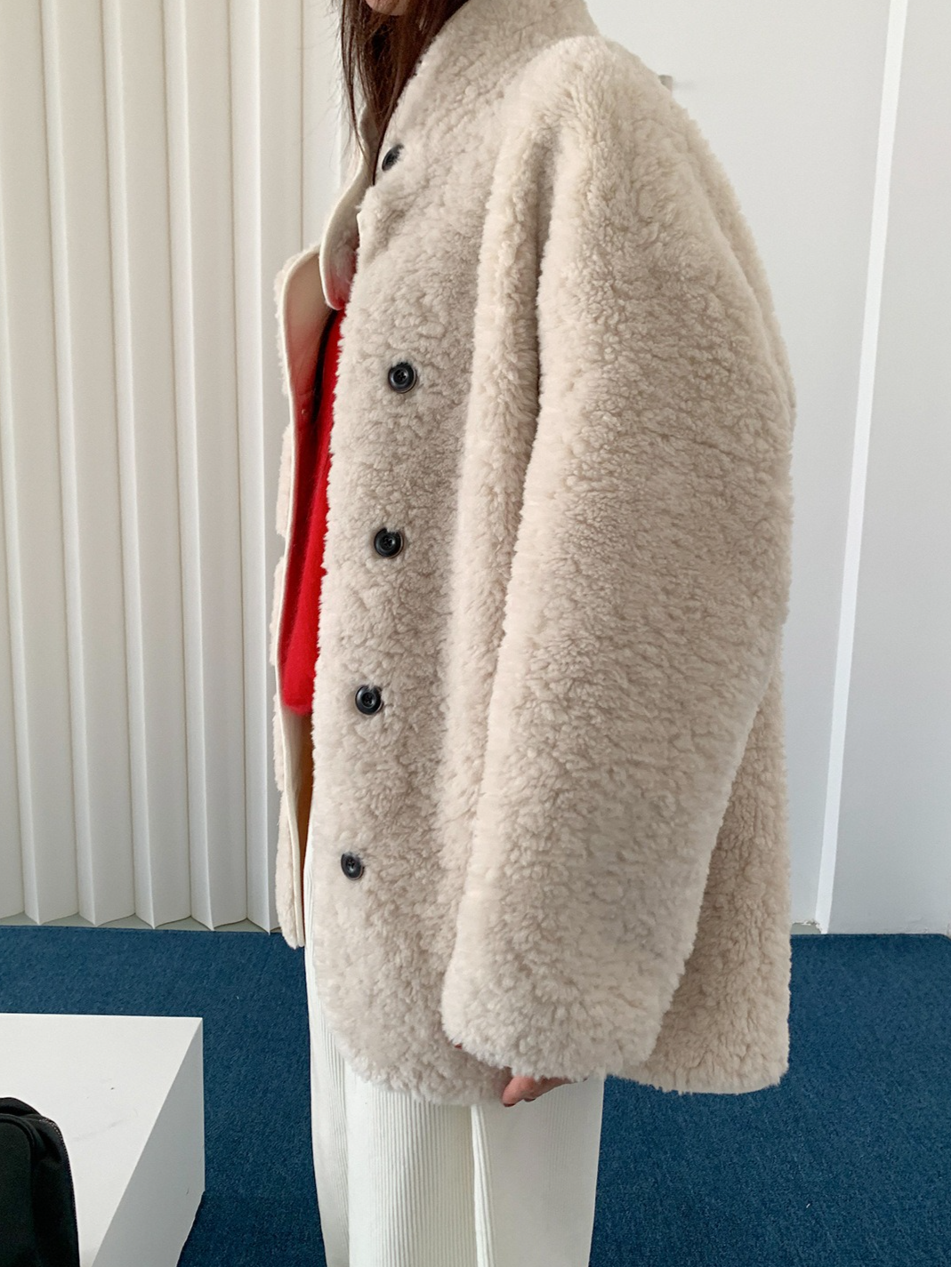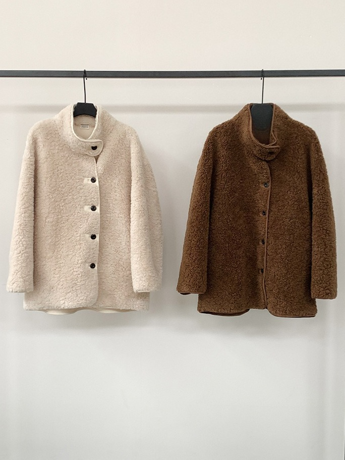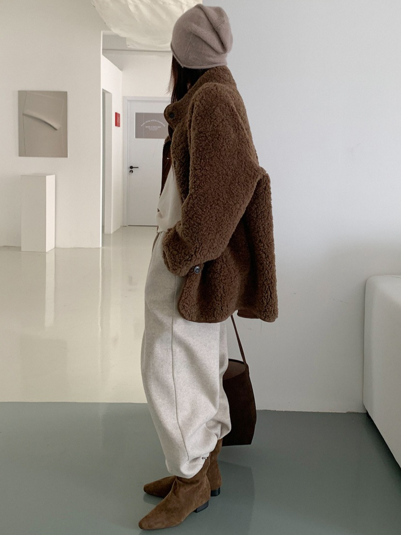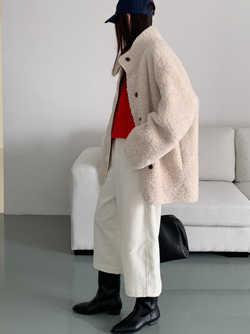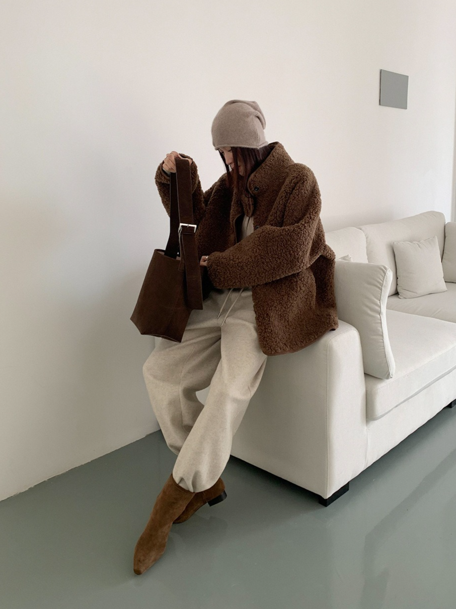 柔らかなボア素材が心地よい、スタンドカラーデザインのショートコート。ふんわりとした質感で、首元までしっかり覆うスタンドカラーが冬の冷たい風を防ぎながらも、上品な印象に。ゆったりとしたシルエットで重ね着もしやすく、ヒップラインをカバーする絶妙な丈感。デニムやワイドパンツはもちろん、スカートにもバランスよくマッチします。