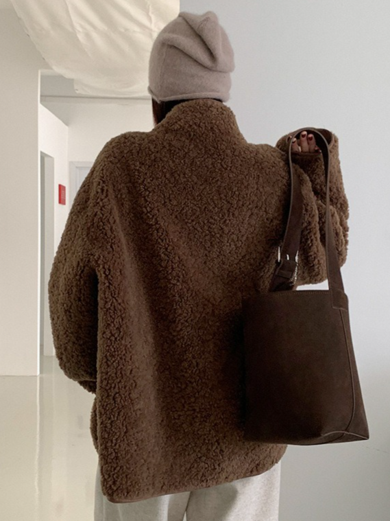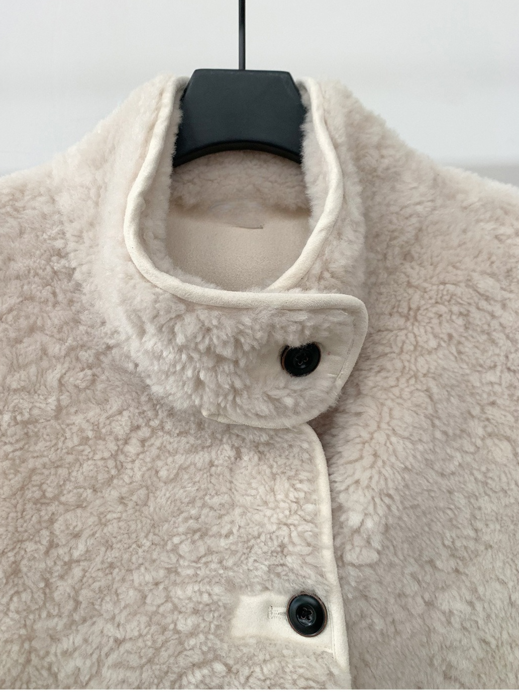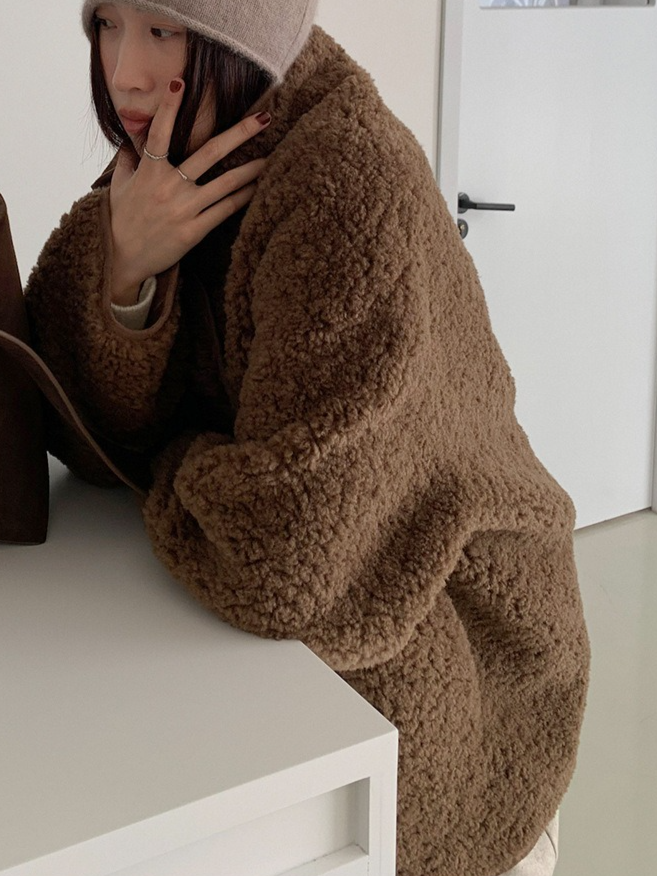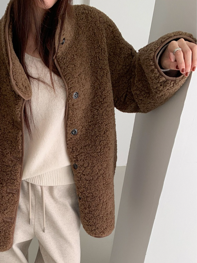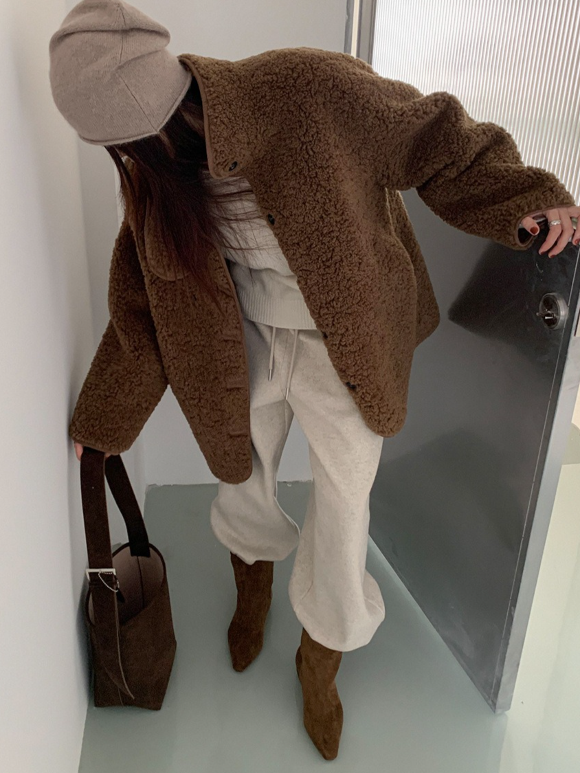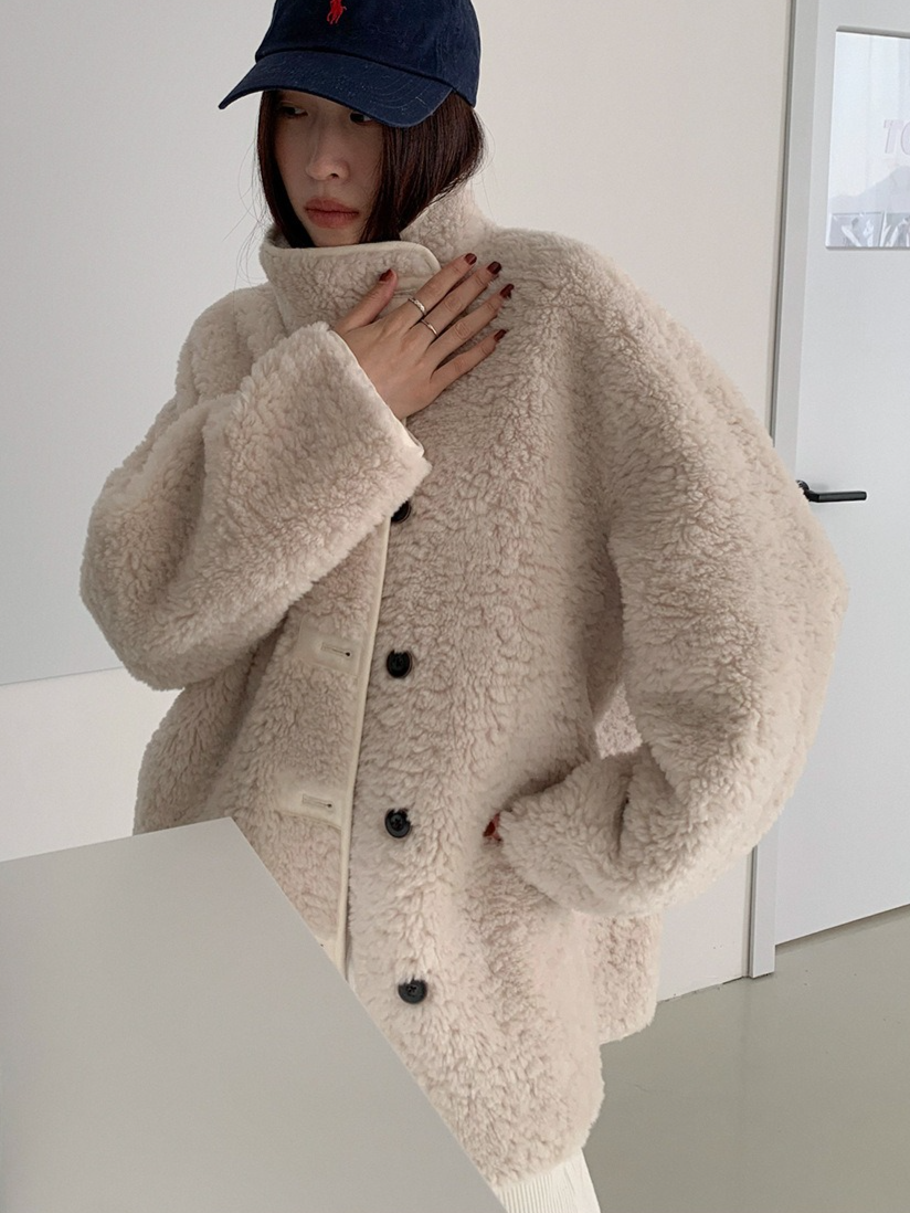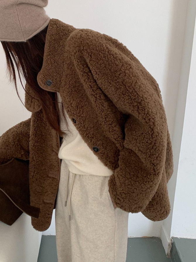柔らかなボア素材が心地よい、スタンドカラーデザインのショートコート。ふんわりとした質感で、首元までしっかり覆うスタンドカラーが冬の冷たい風を防ぎながらも、上品な印象に。ゆったりとしたシルエットで重ね着もしやすく、ヒップラインをカバーする絶妙な丈感。デニムやワイドパンツはもちろん、スカートにもバランスよくマッチします。