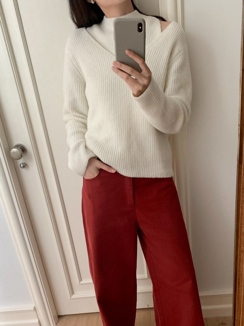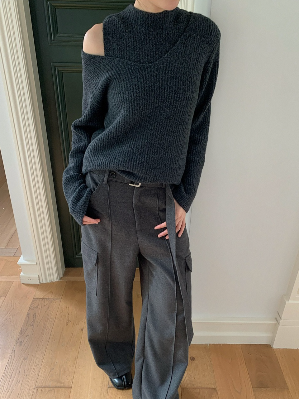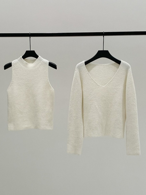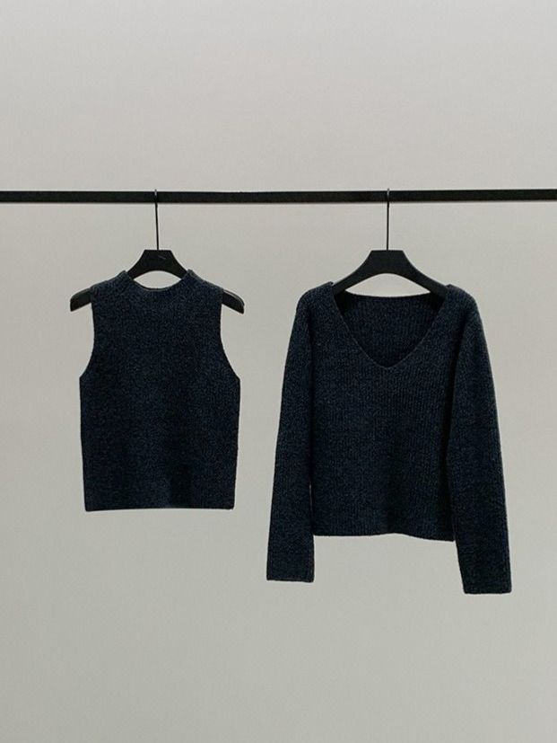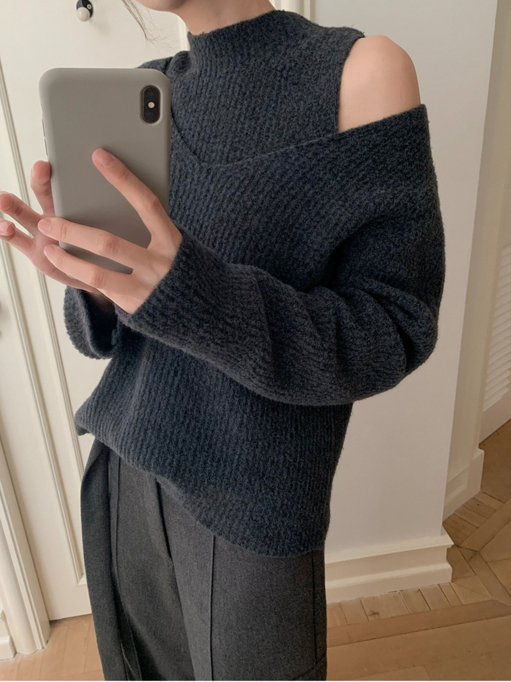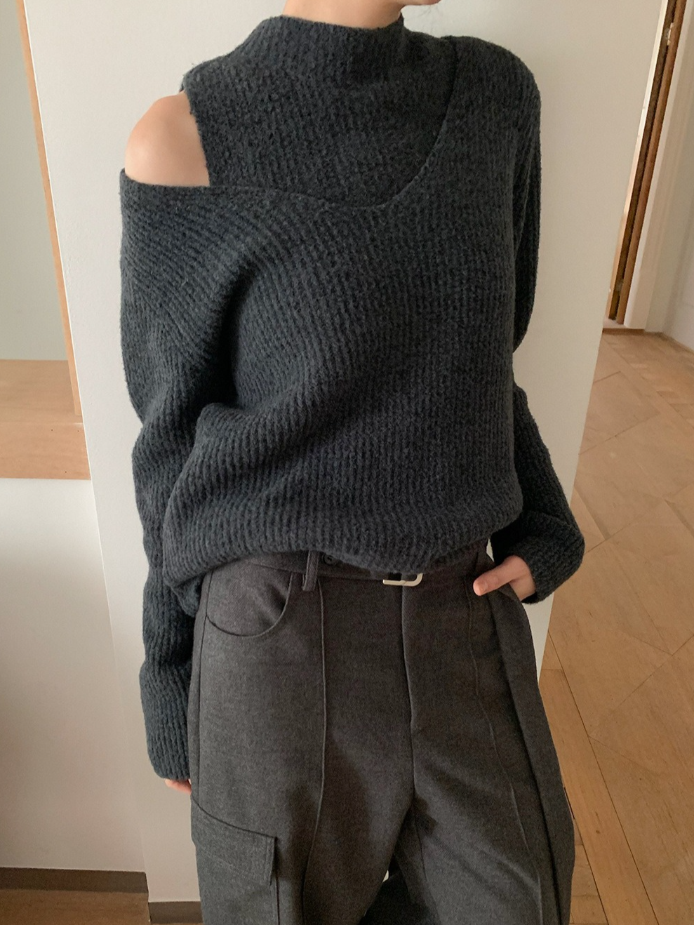 Vネックとプチハイネックタニットのレイヤードが印象的なニットトップス。一枚でスタイリングが完成する計算されたバランスで、肩のラインや襟元の抜け感が大人な印象に。ややルーズなシルエットがこなれたリラックスムードを演出。程よい厚みと柔らかな肌触りで、インナーとしても主役としても活躍します。