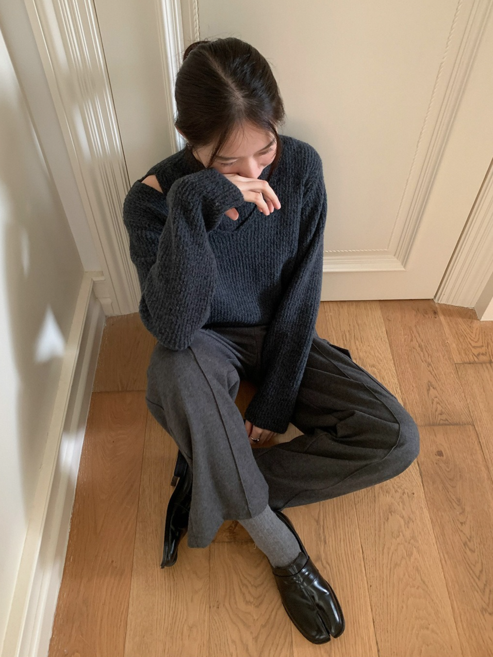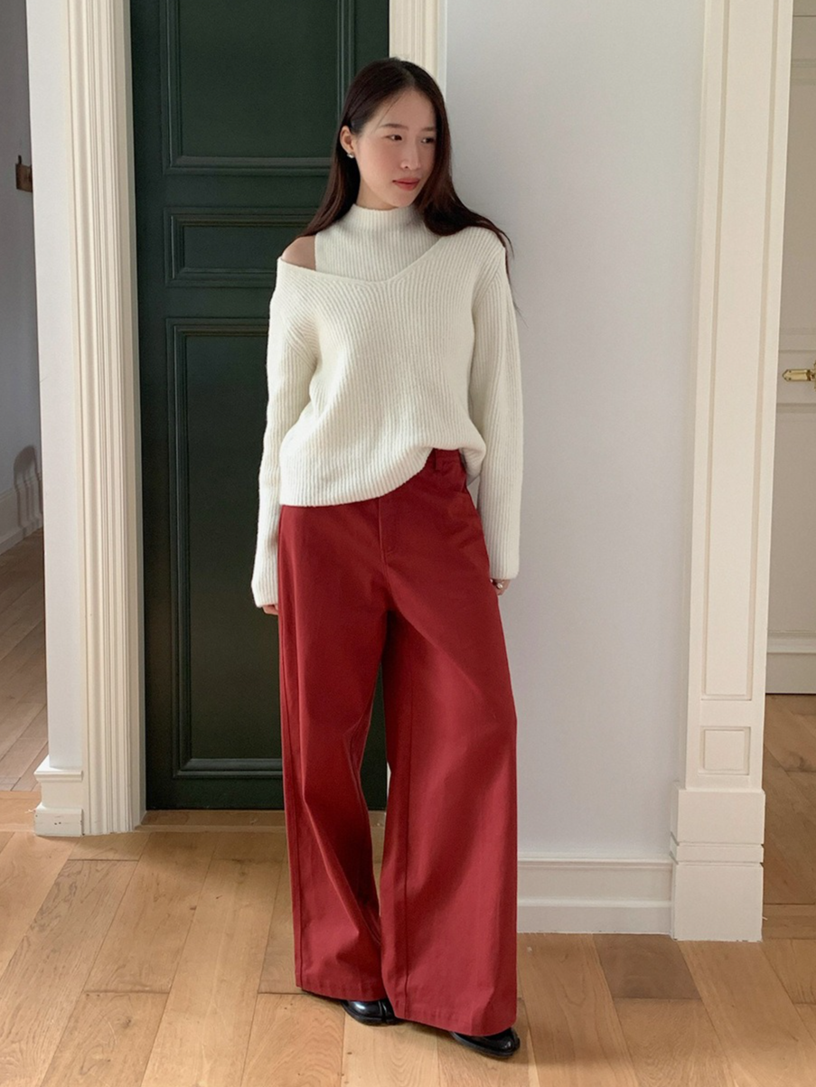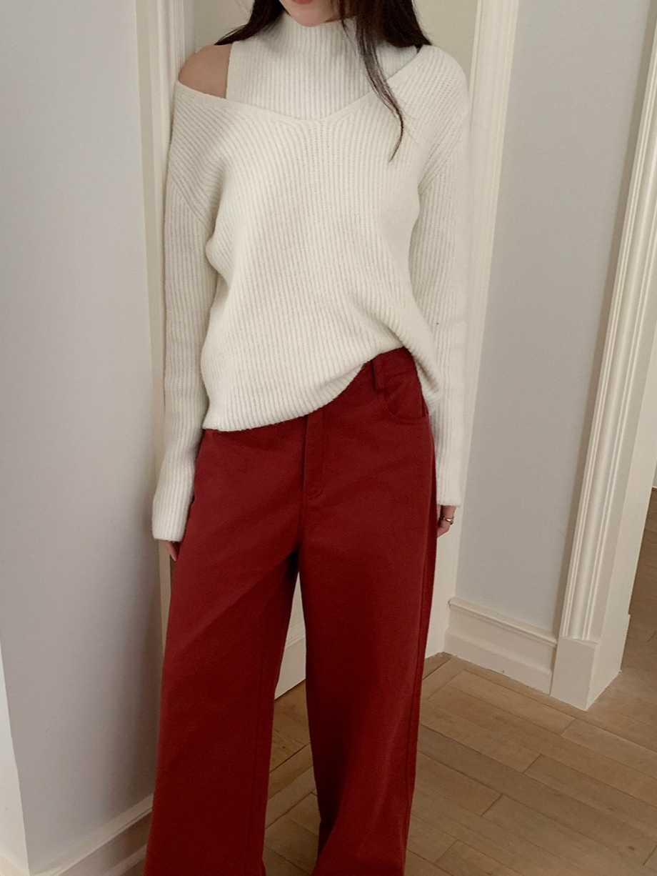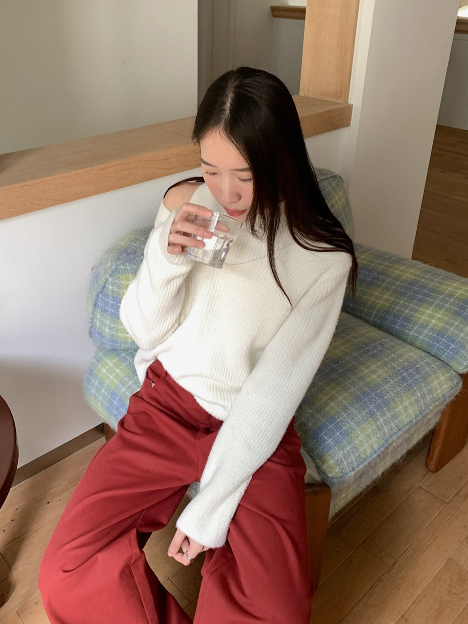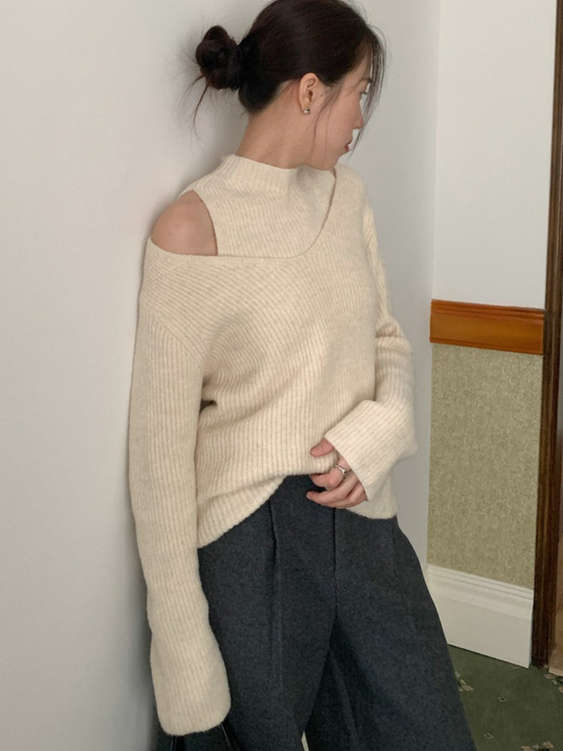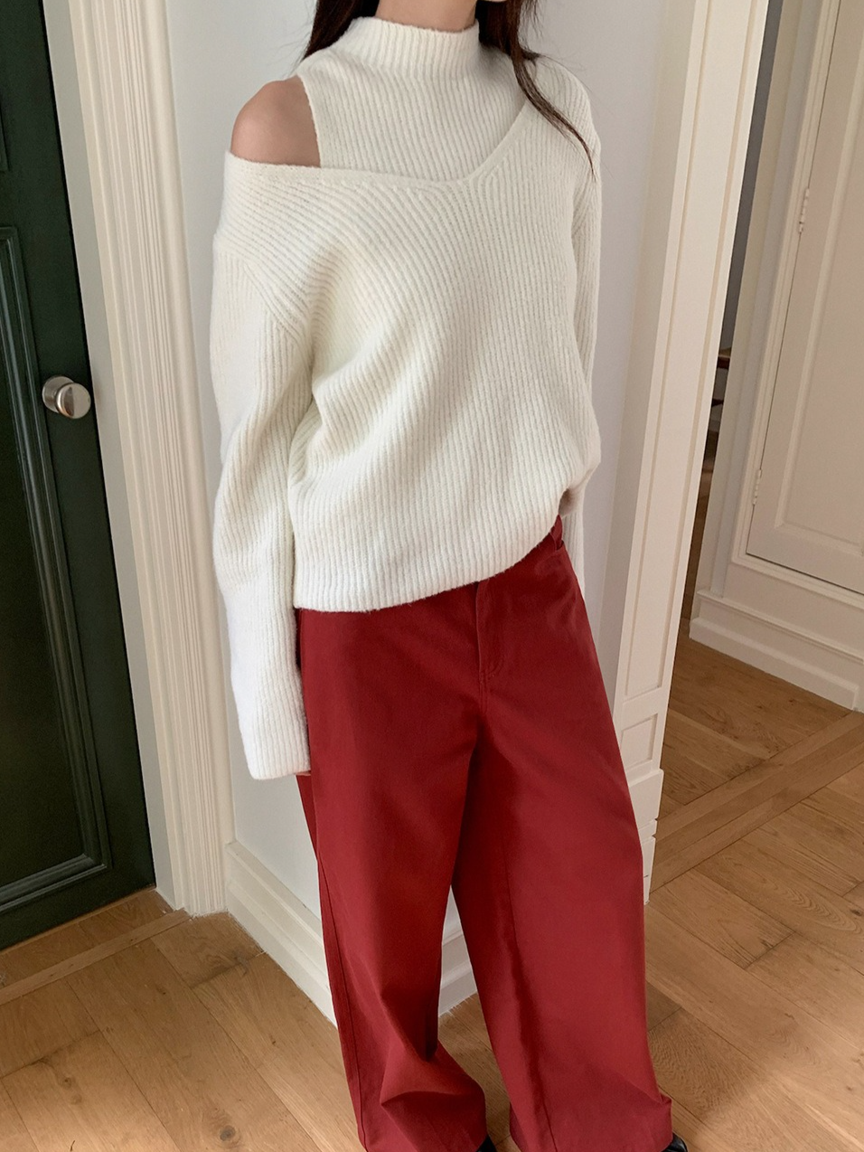 Vネックとプチハイネックタニットのレイヤードが印象的なニットトップス。一枚でスタイリングが完成する計算されたバランスで、肩のラインや襟元の抜け感が大人な印象に。ややルーズなシルエットがこなれたリラックスムードを演出。程よい厚みと柔らかな肌触りで、インナーとしても主役としても活躍します。