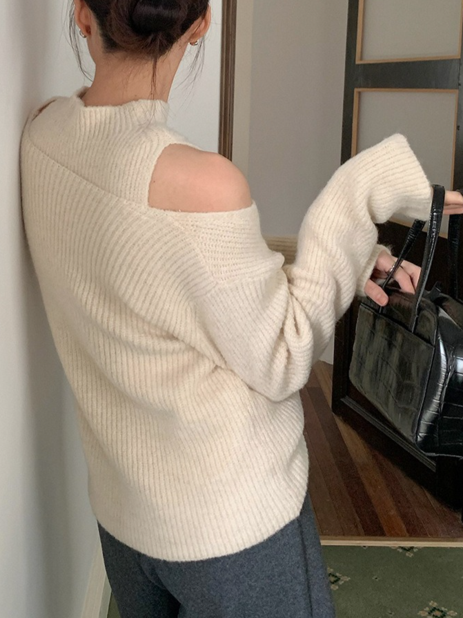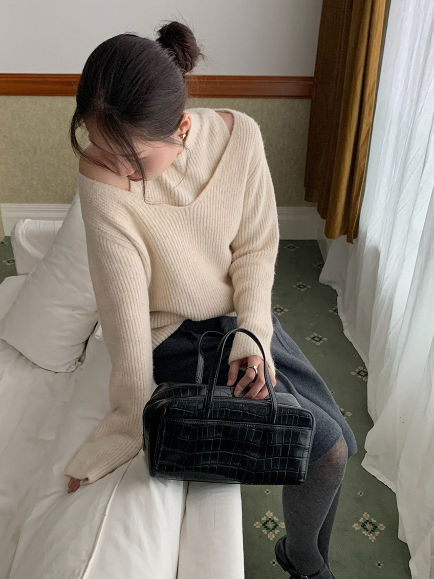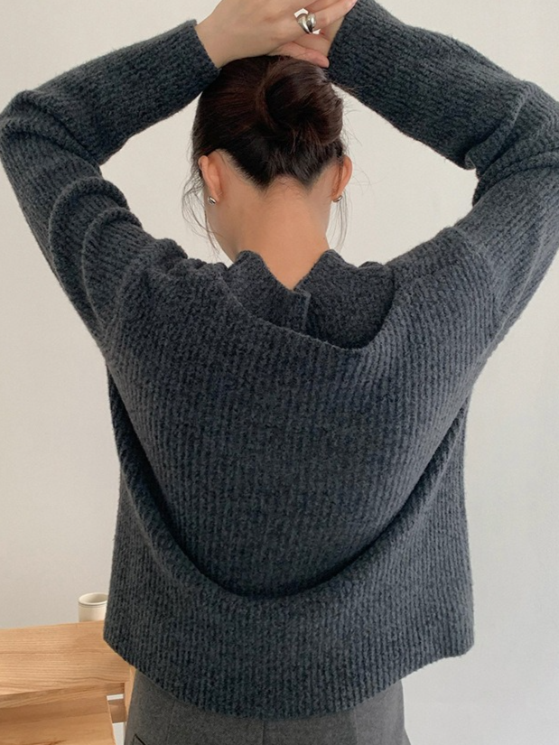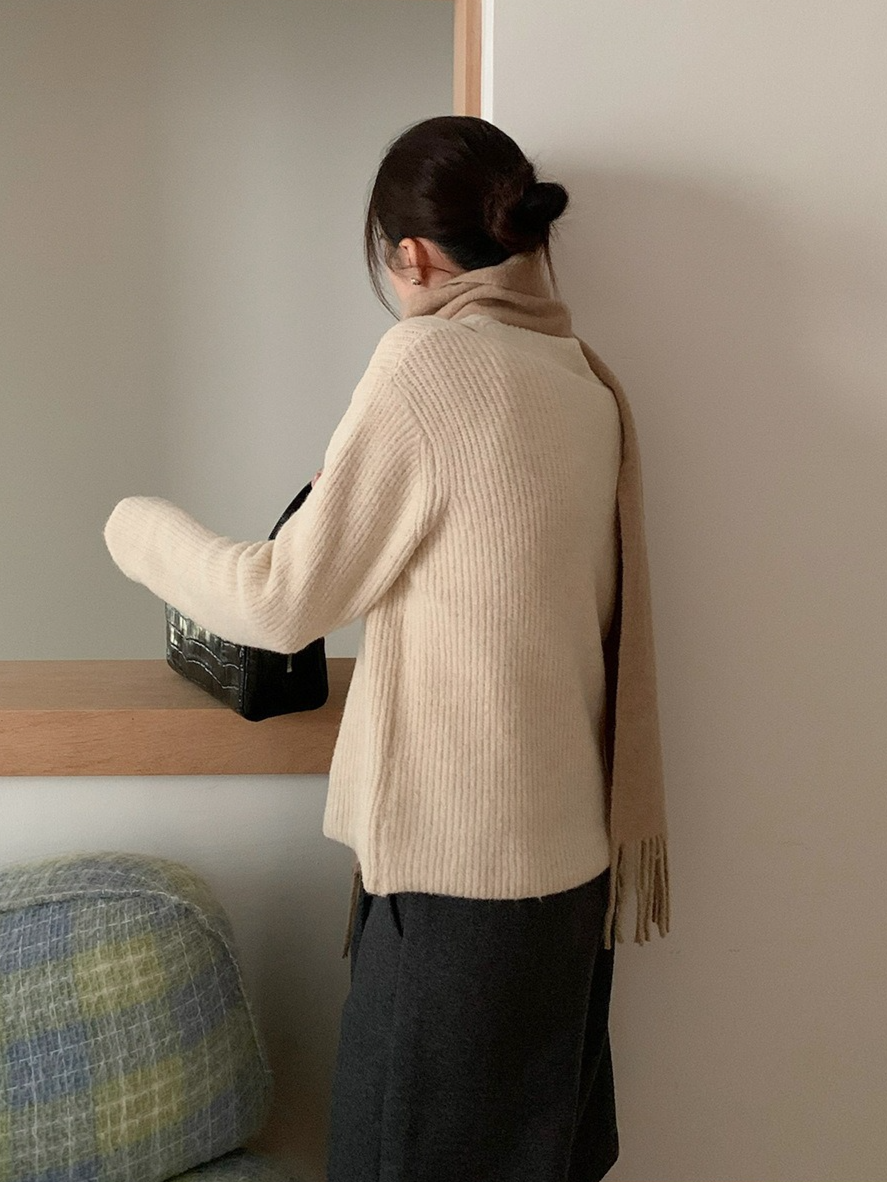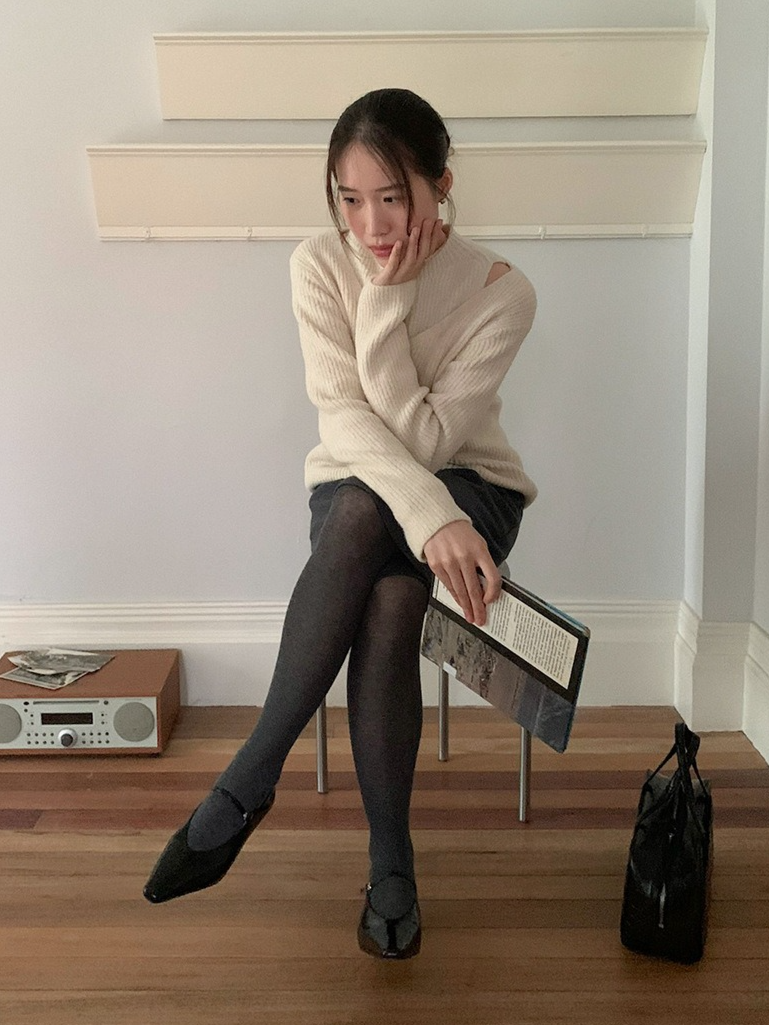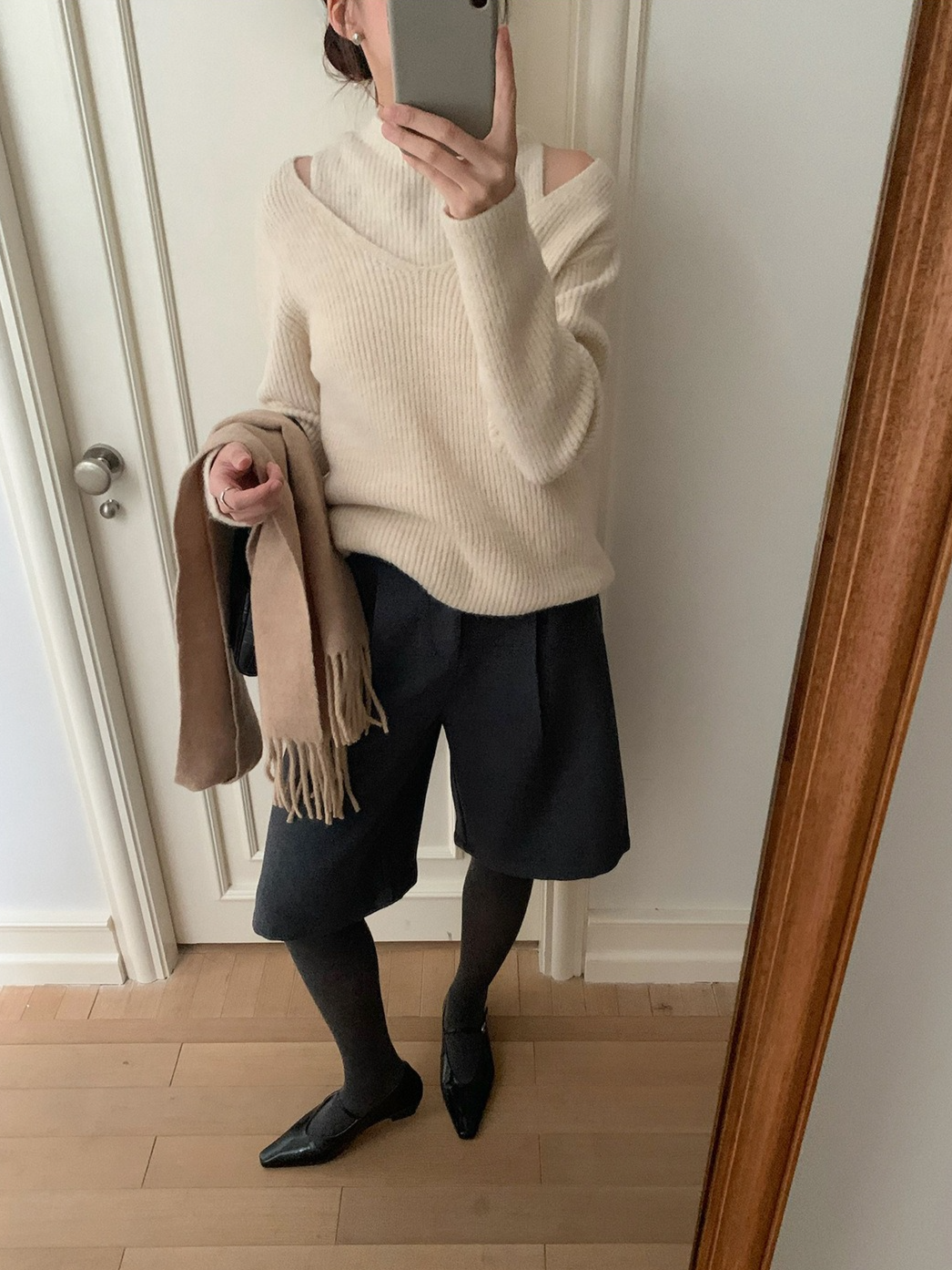Vネックとプチハイネックタニットのレイヤードが印象的なニットトップス。一枚でスタイリングが完成する計算されたバランスで、肩のラインや襟元の抜け感が大人な印象に。ややルーズなシルエットがこなれたリラックスムードを演出。程よい厚みと柔らかな肌触りで、インナーとしても主役としても活躍します。