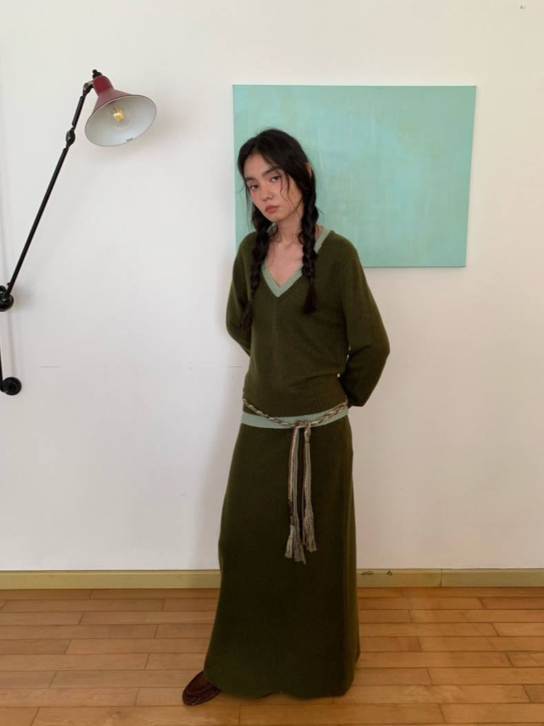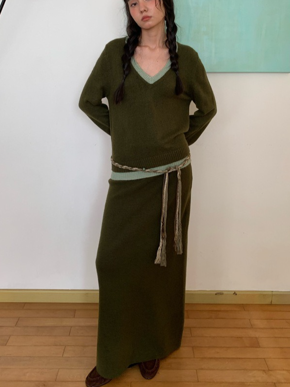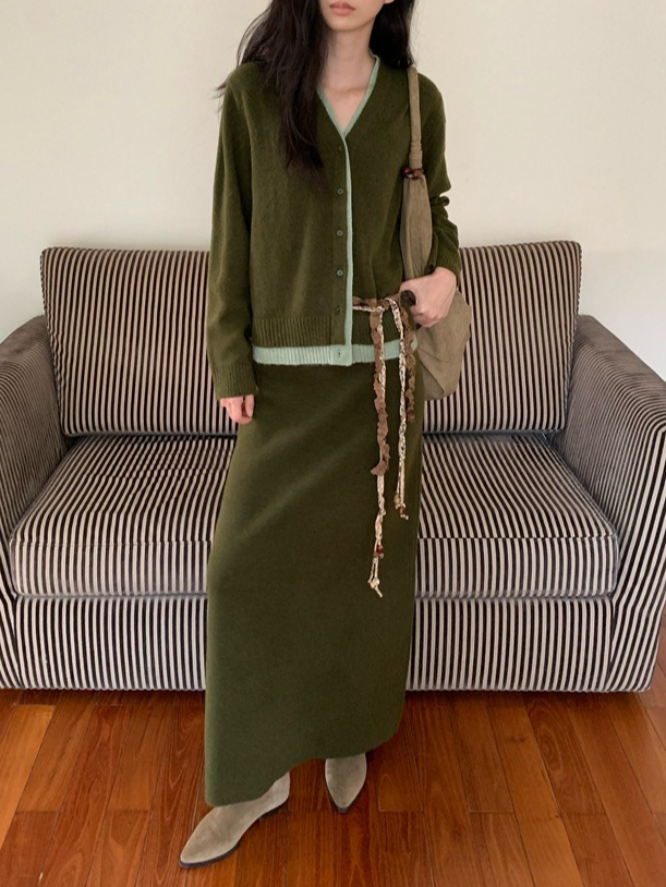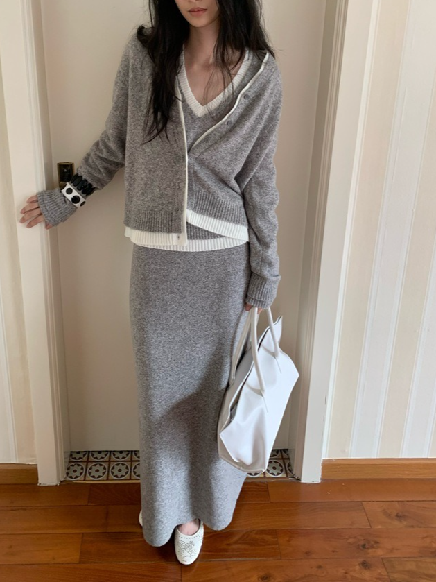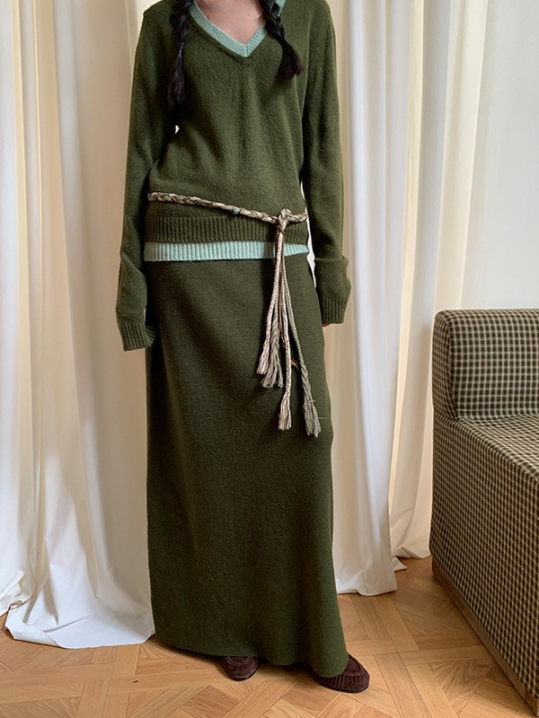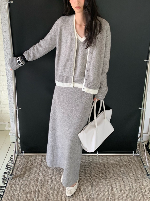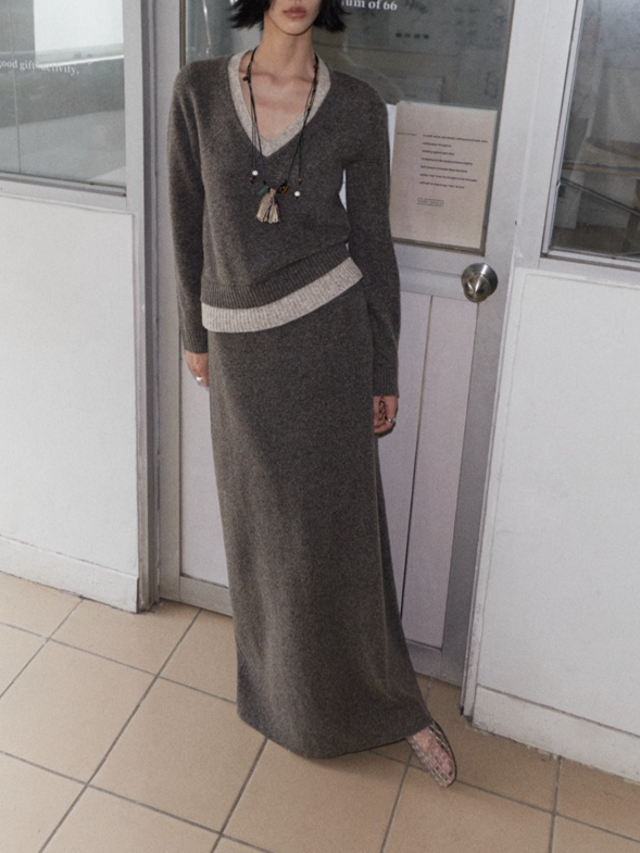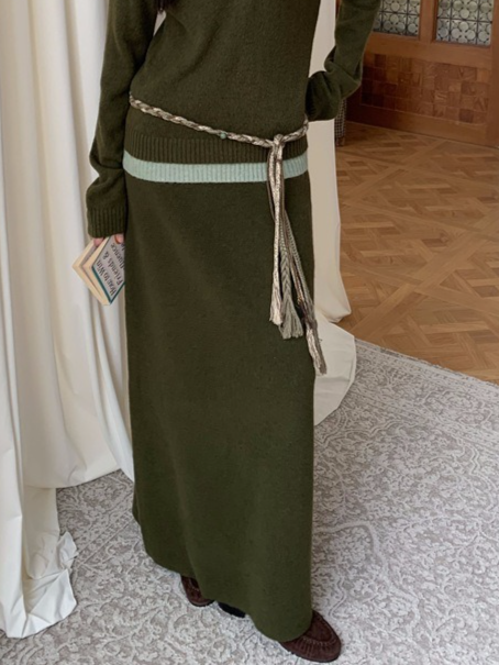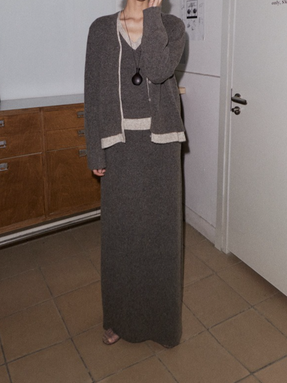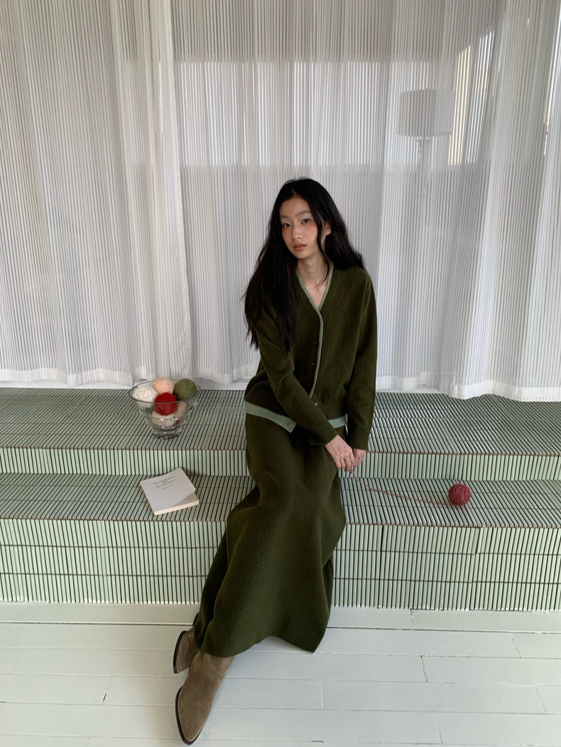 柔らかく身体に沿うラインが美しい、ウール混素材のニットスカート。しなやかで優しい肌触りが魅力で、窮屈さを感じさせないナチュラルなフィット感が特徴です。まっすぐ落ちるシルエットが脚をすっきりと見せ、女性らしさと上品さを両立。同素材のカーディガンやニットトップスと合わせたセットアップスタイルもおすすめです。ミニマルなデザインながらも、質感とシルエットで魅せる一着。季節のムードを引き立てながら、日常を心地よく彩ります。