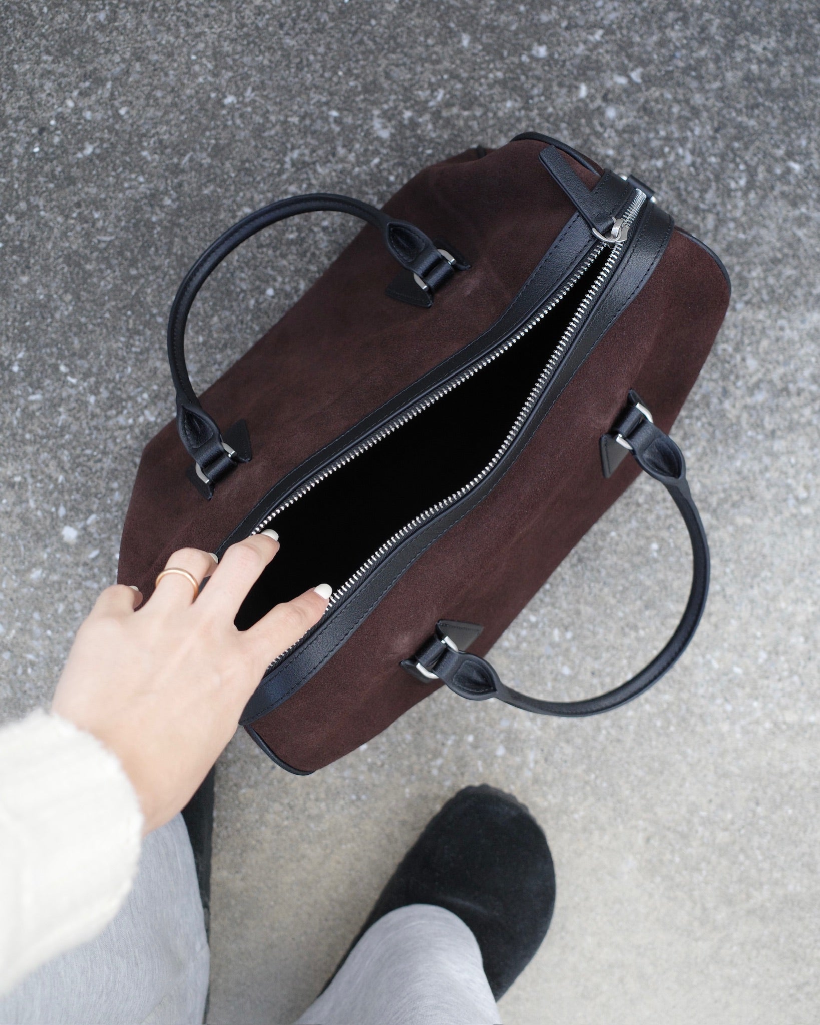 くたっと感が可愛い、大人のためのソフトスエードボストンバッグ