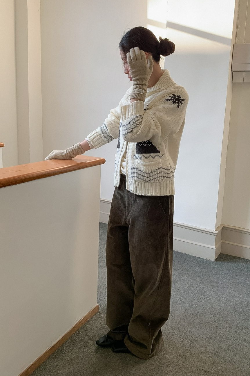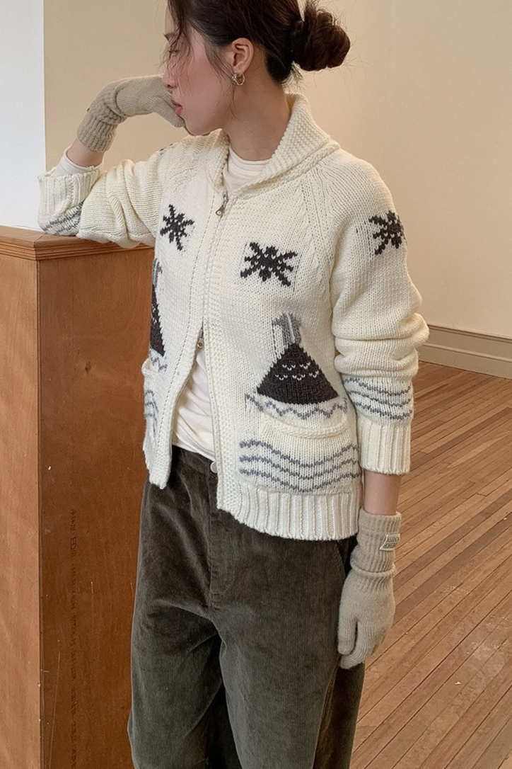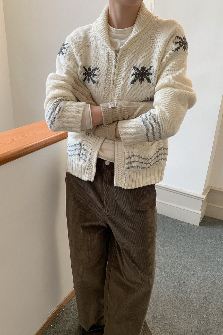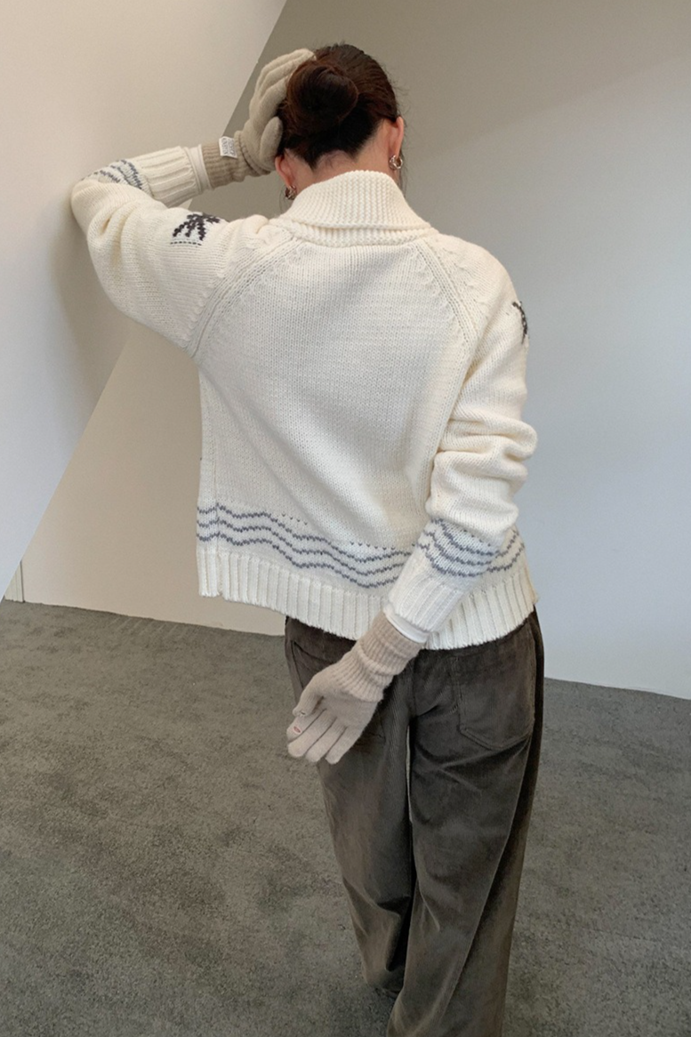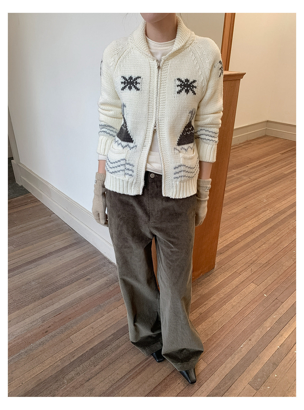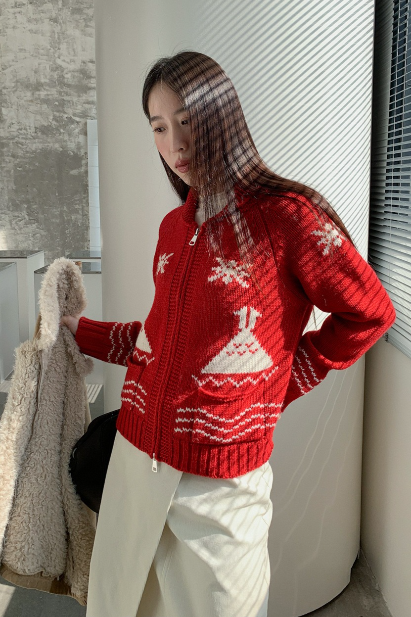 冬らしいノルディック柄が目を惹くジップニット。軽く羽織れるのに暖かく、立ち襟と前開きジップで着こなしの幅も広がります。程よくゆとりのあるシルエットで、パンツにもスカートにも合わせやすいバランス。羊毛混の柔らかな生地感が心地よく、デイリーに使いやすい一枚です。