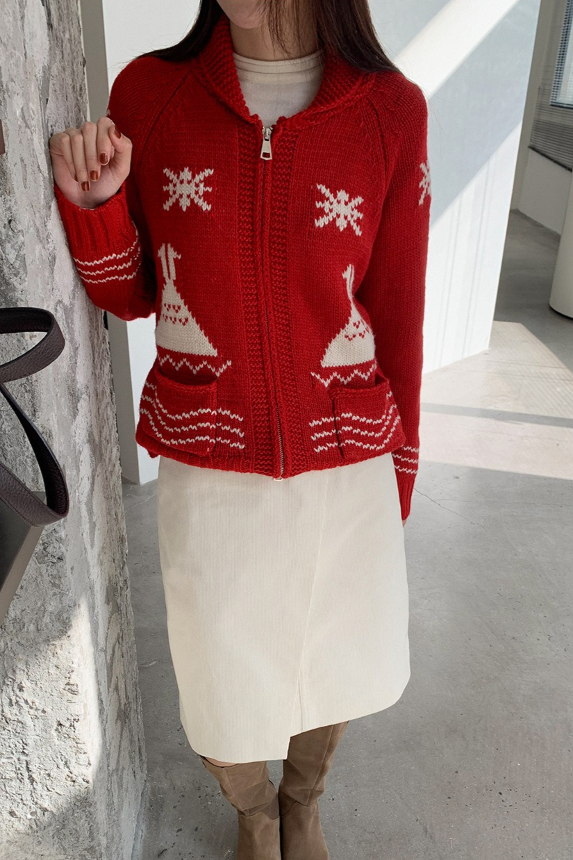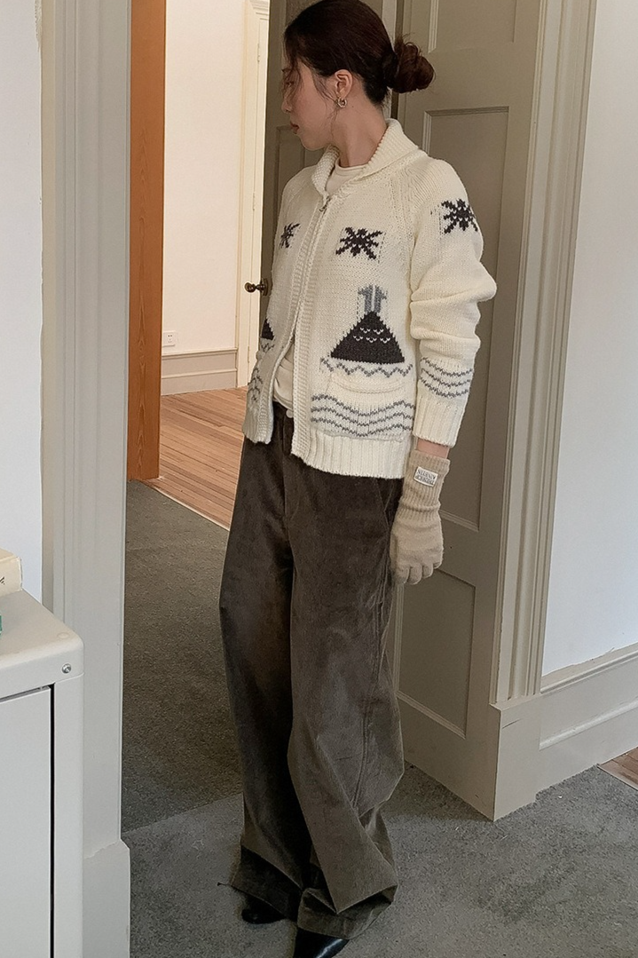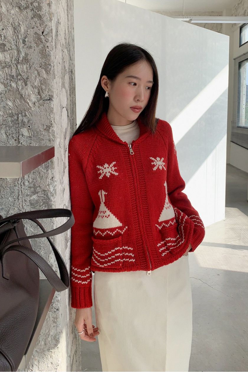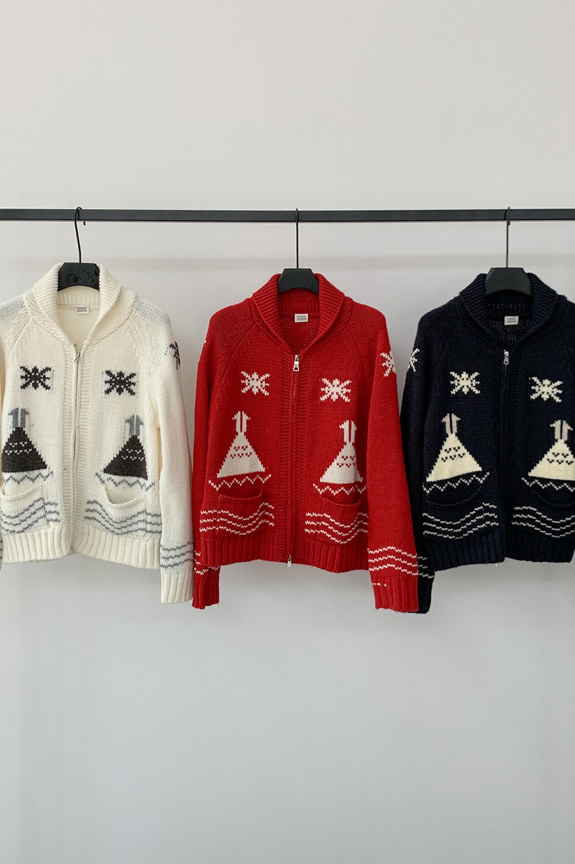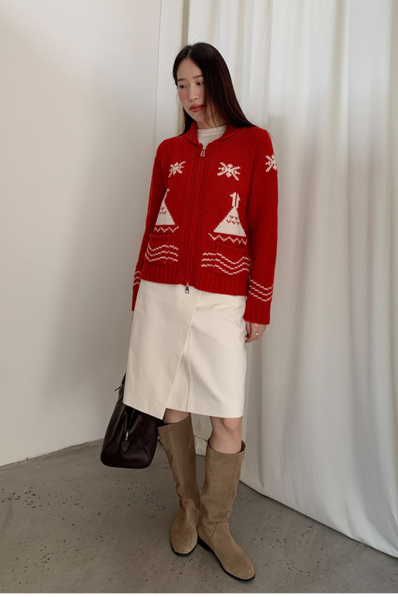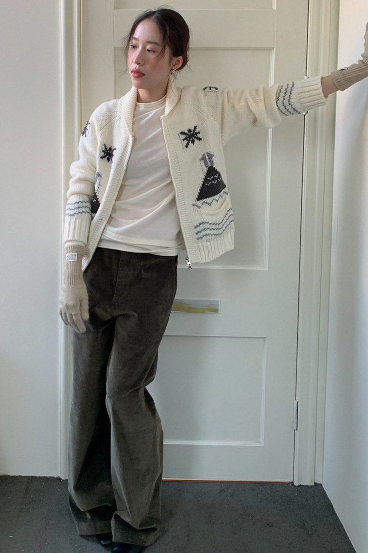 冬らしいノルディック柄が目を惹くジップニット。軽く羽織れるのに暖かく、立ち襟と前開きジップで着こなしの幅も広がります。程よくゆとりのあるシルエットで、パンツにもスカートにも合わせやすいバランス。羊毛混の柔らかな生地感が心地よく、デイリーに使いやすい一枚です。