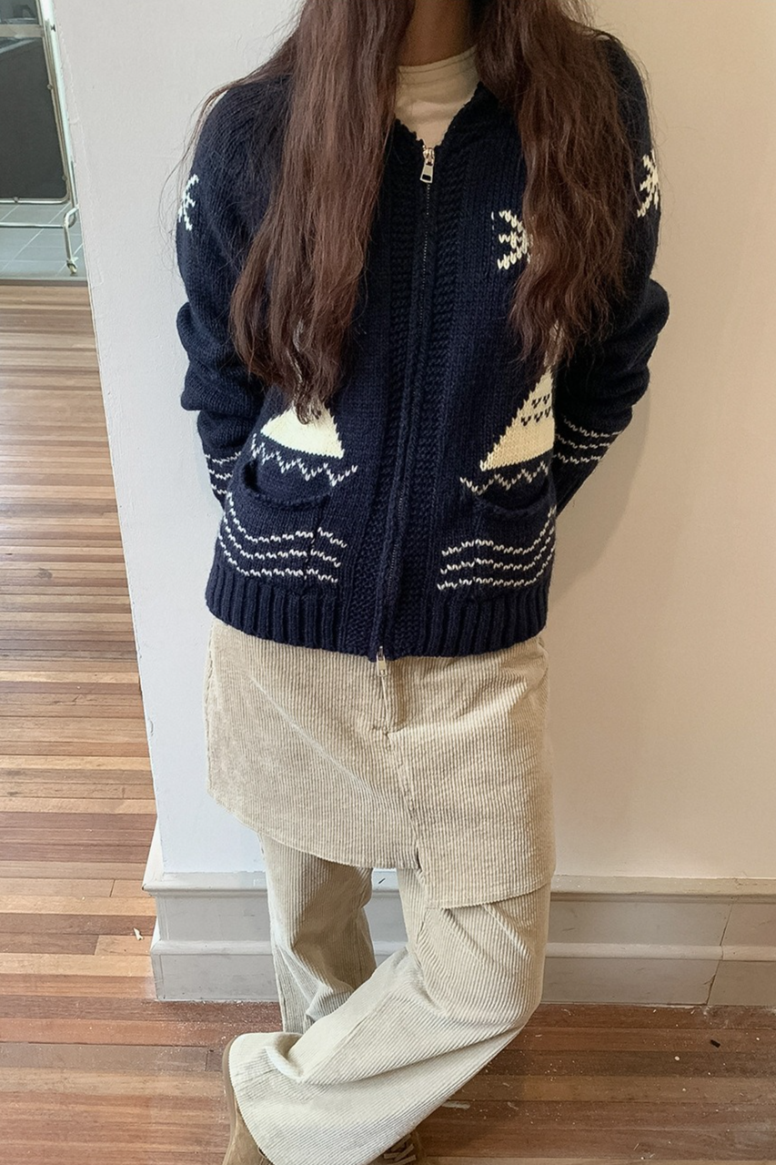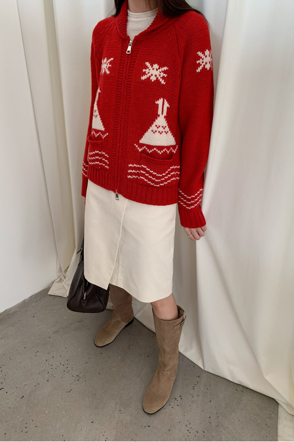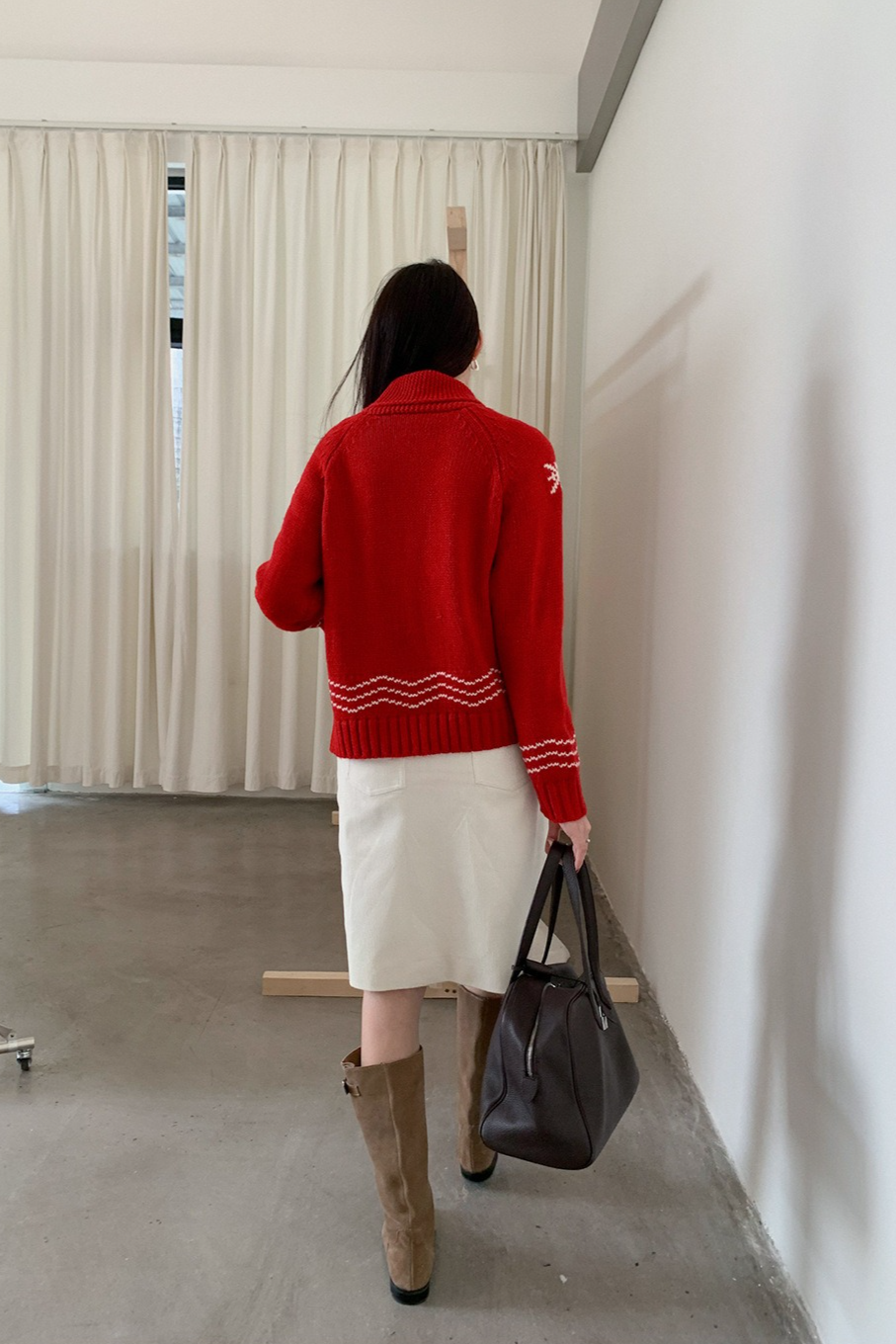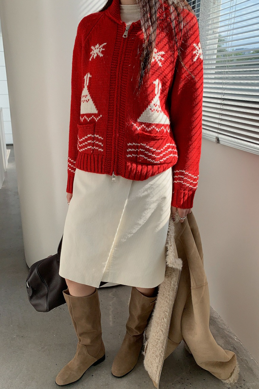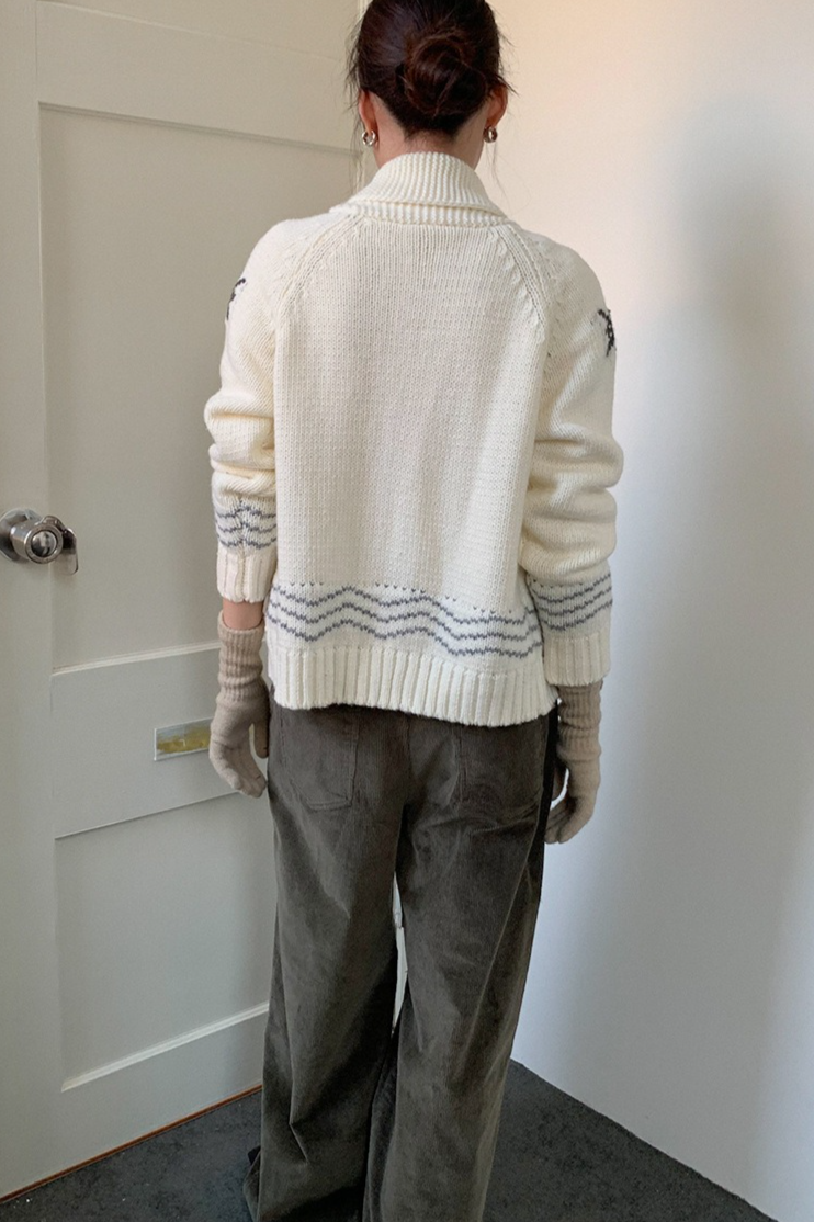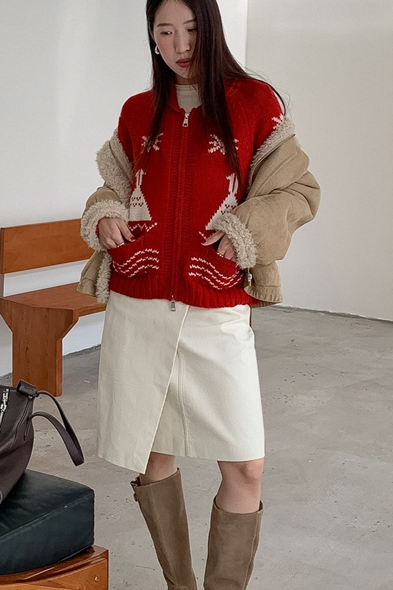 冬らしいノルディック柄が目を惹くジップニット。軽く羽織れるのに暖かく、立ち襟と前開きジップで着こなしの幅も広がります。程よくゆとりのあるシルエットで、パンツにもスカートにも合わせやすいバランス。羊毛混の柔らかな生地感が心地よく、デイリーに使いやすい一枚です。