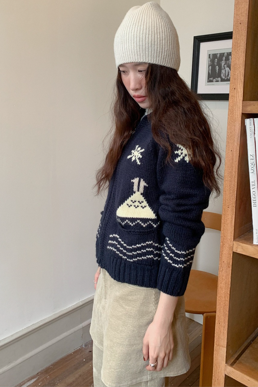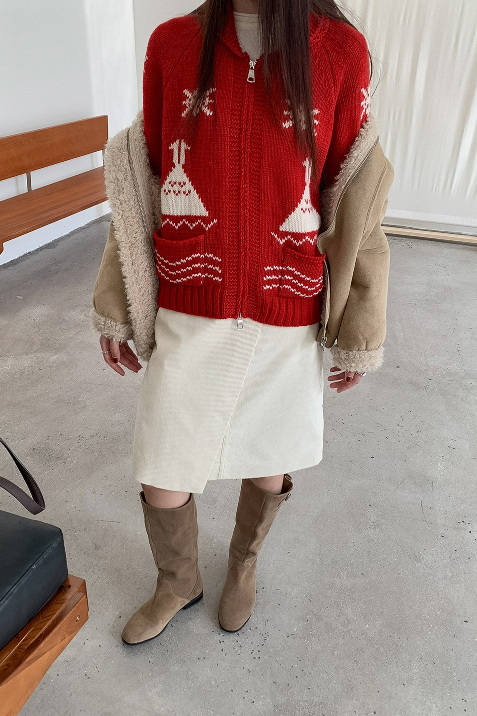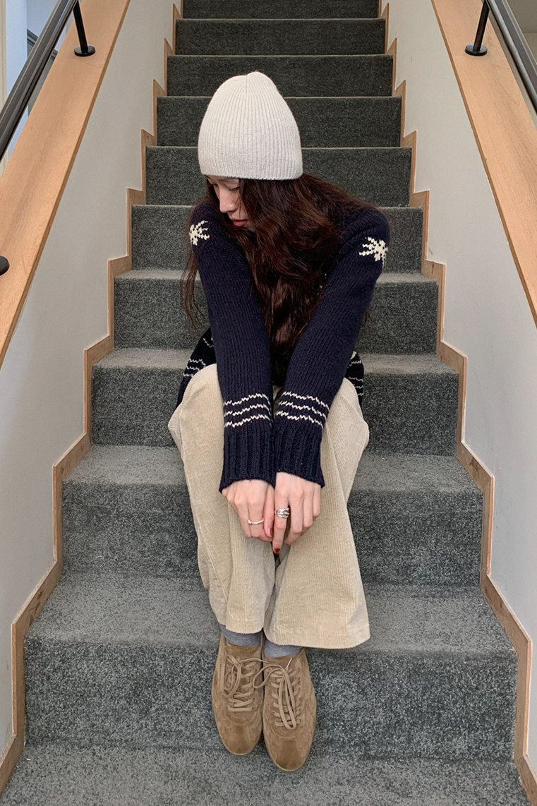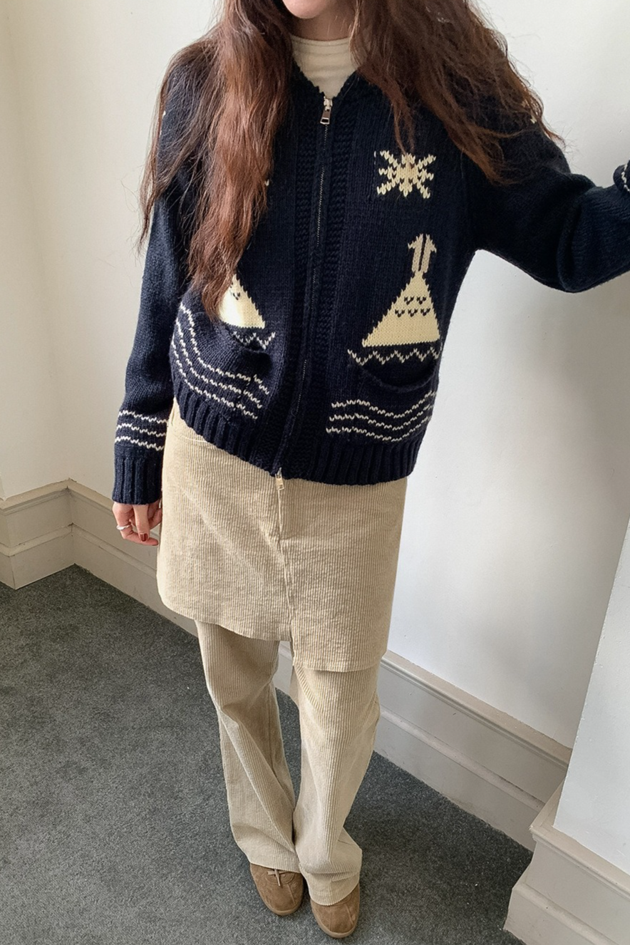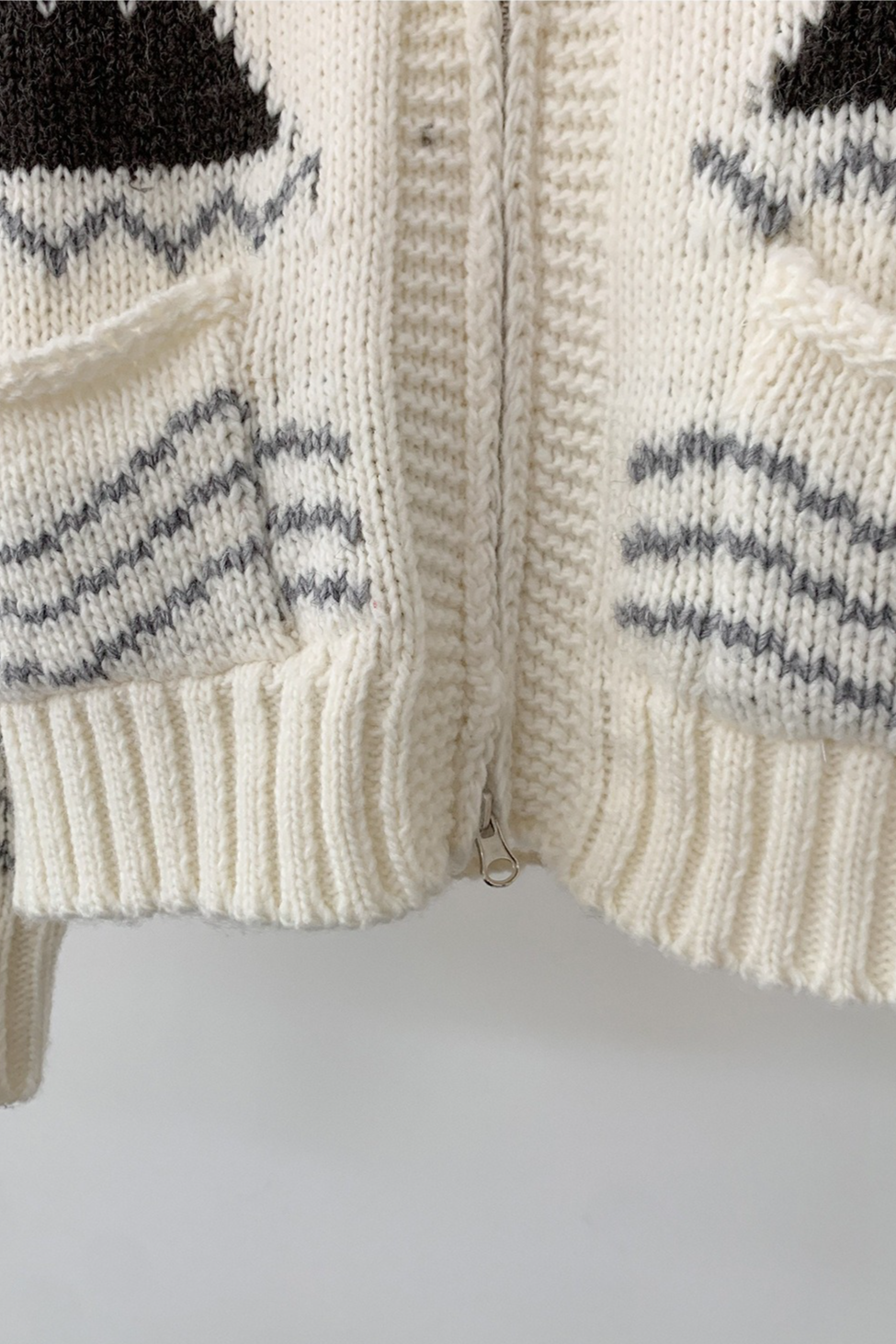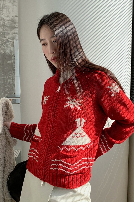 冬らしいノルディック柄が目を惹くジップニット。軽く羽織れるのに暖かく、立ち襟と前開きジップで着こなしの幅も広がります。程よくゆとりのあるシルエットで、パンツにもスカートにも合わせやすいバランス。羊毛混の柔らかな生地感が心地よく、デイリーに使いやすい一枚です。