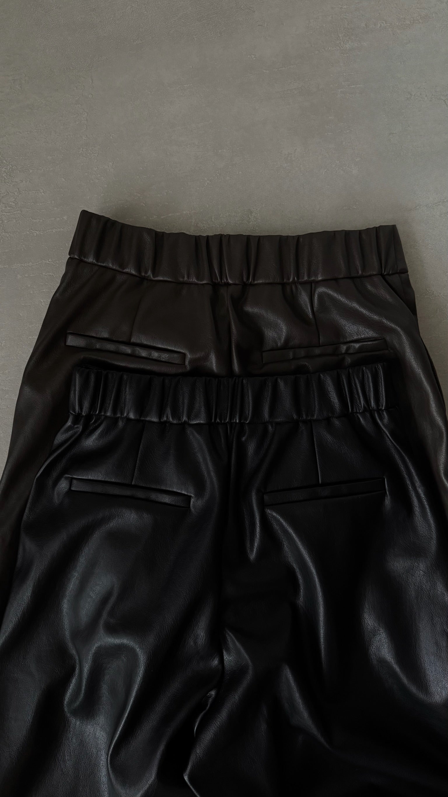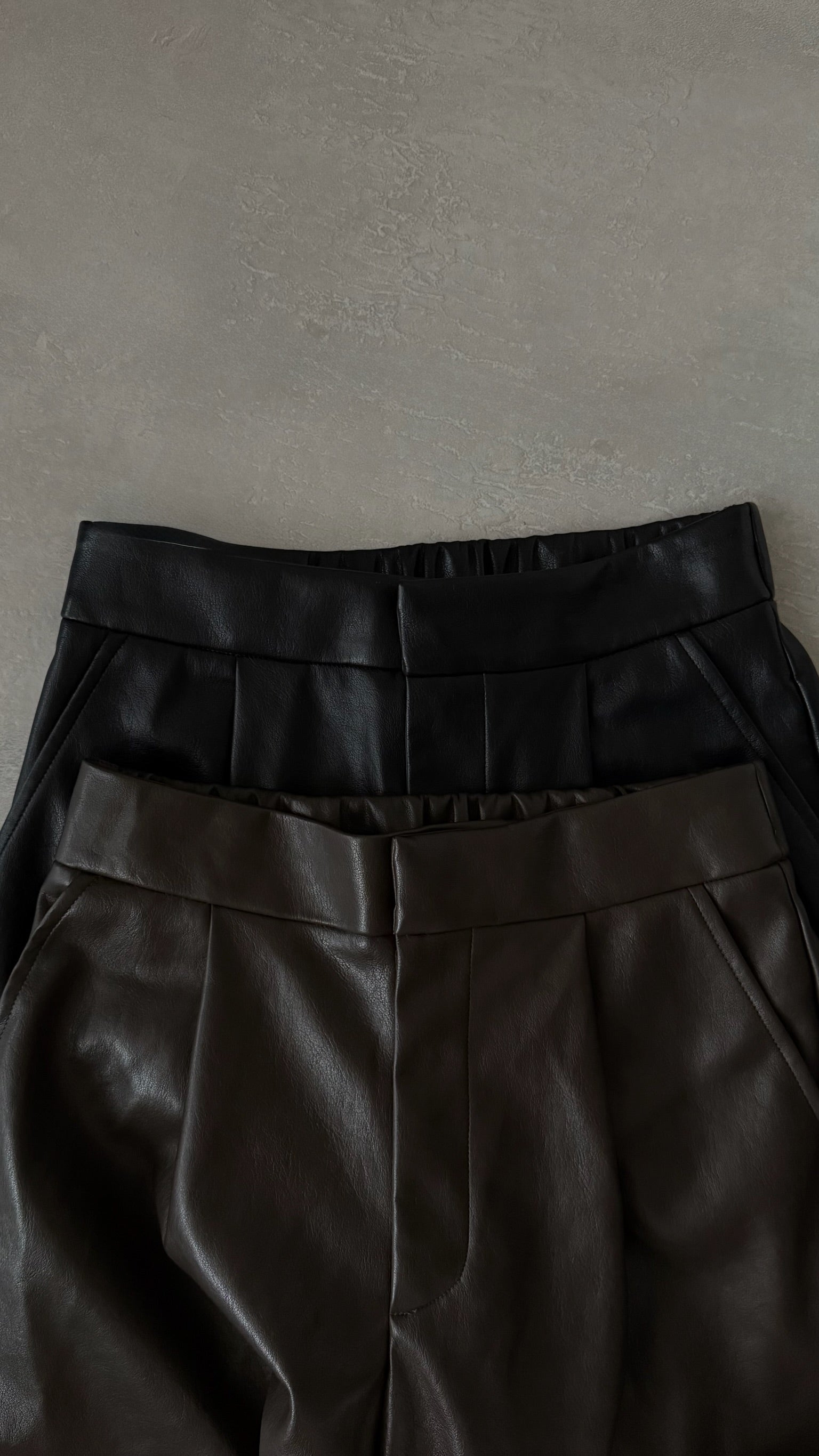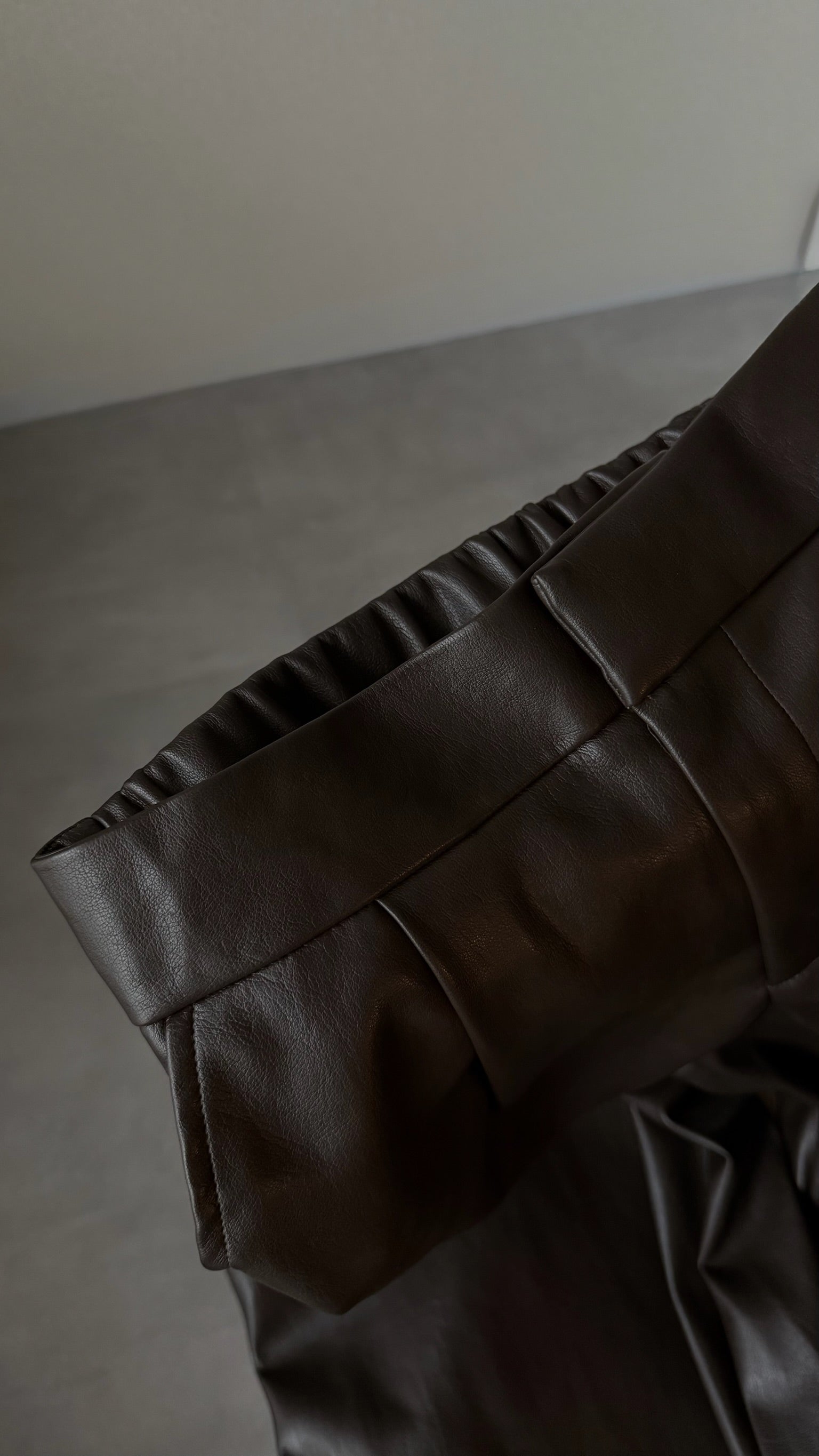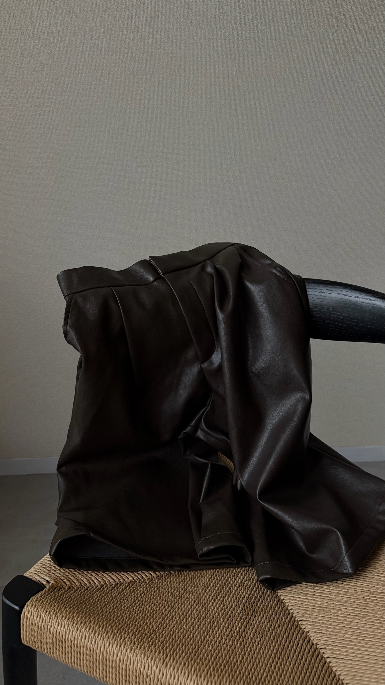 フロントタックが縦のラインを綺麗に見せる、フェイクレザーのガウチョパンツ。フェイクレザー特有の程よいマットなハリが履いた時のシルエットに程よく馴染みます。柔らかな素材感で動きが出やすく、ボリュームがありながらもすっきりとした印象に。スタイリングにモードなニュアンスを添える、シーズンレスで使える一本です。