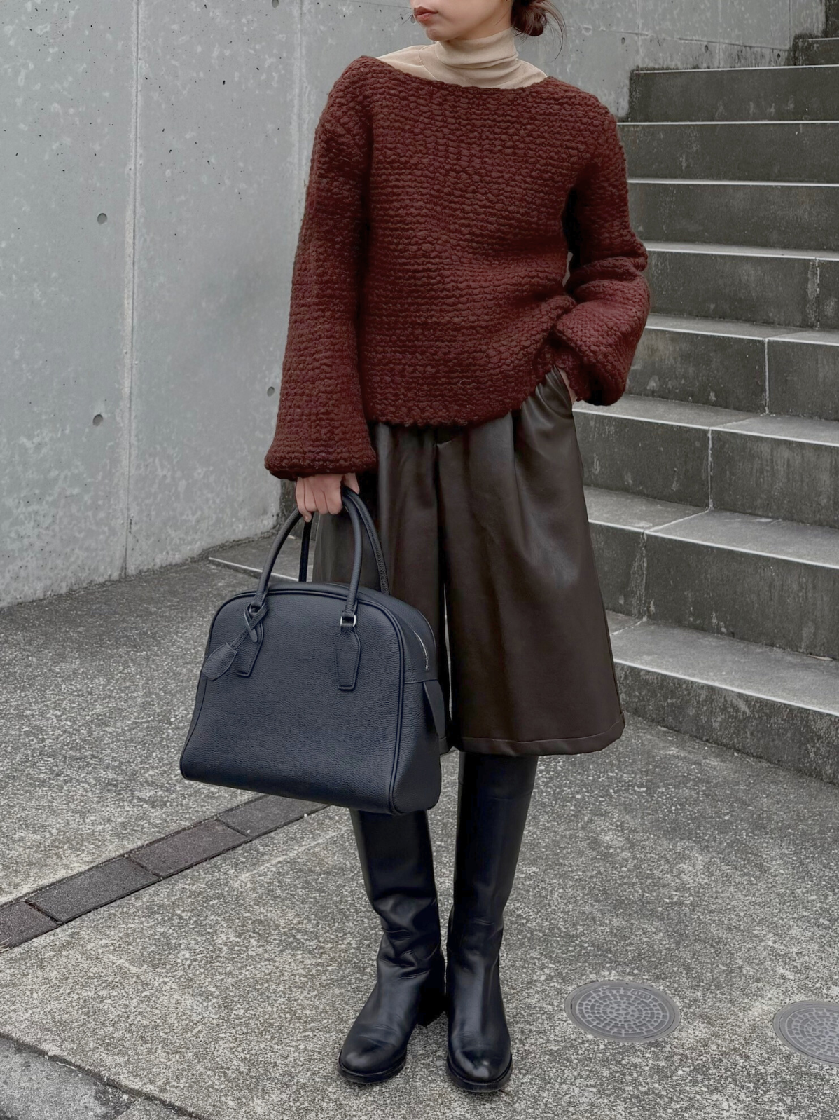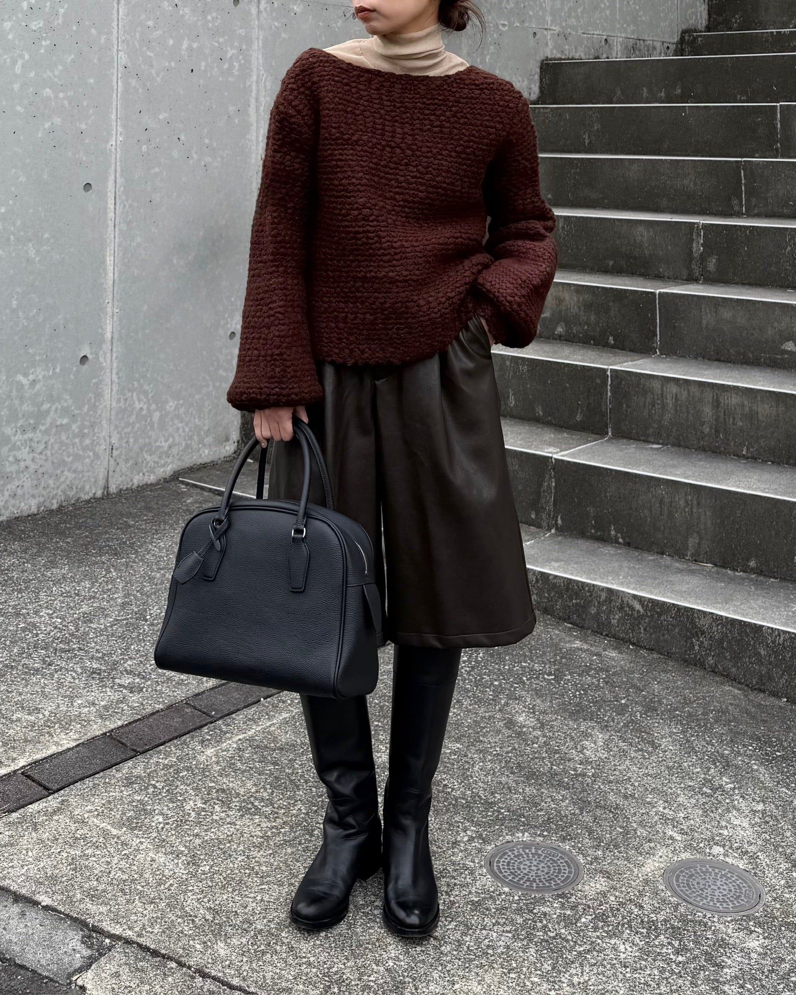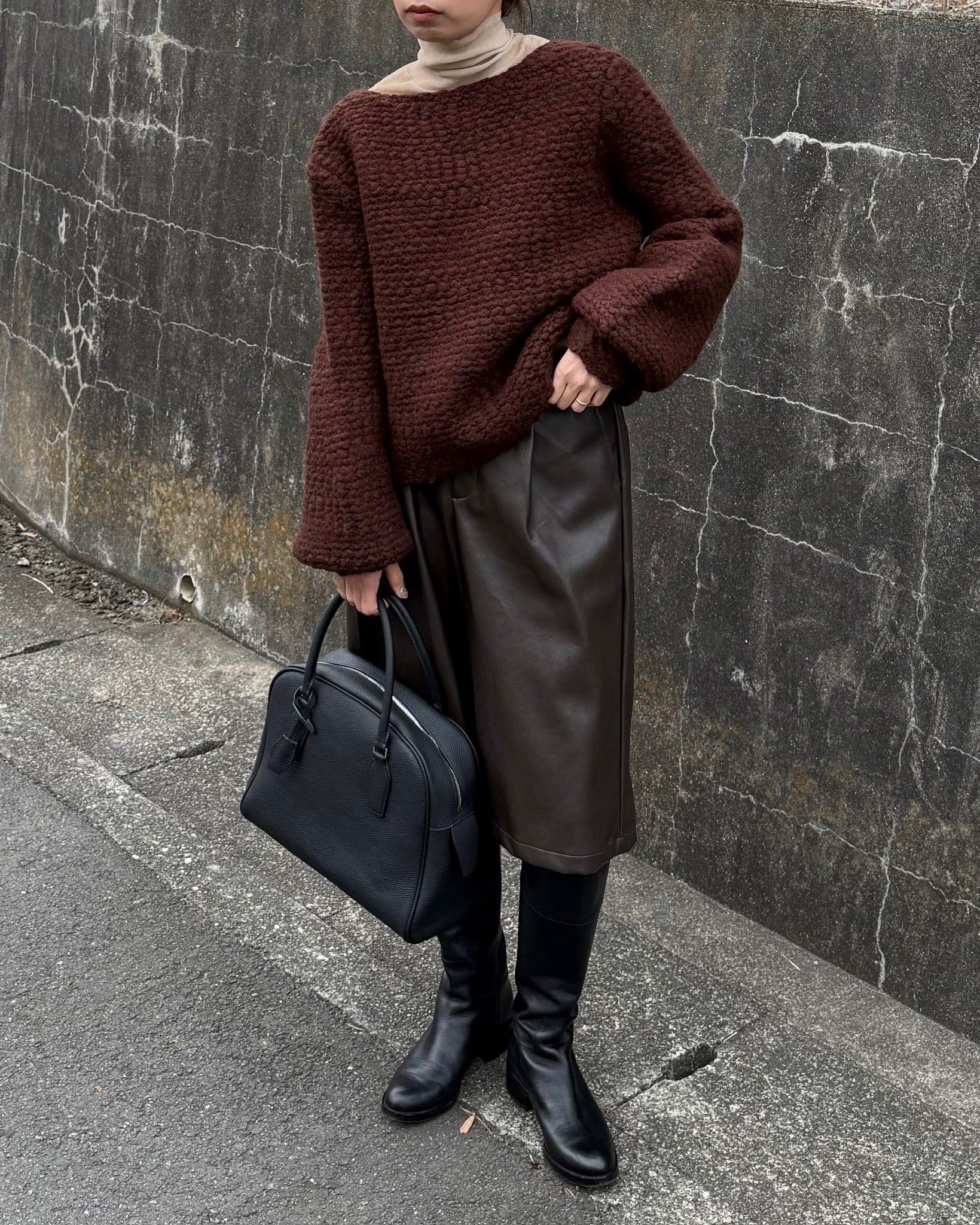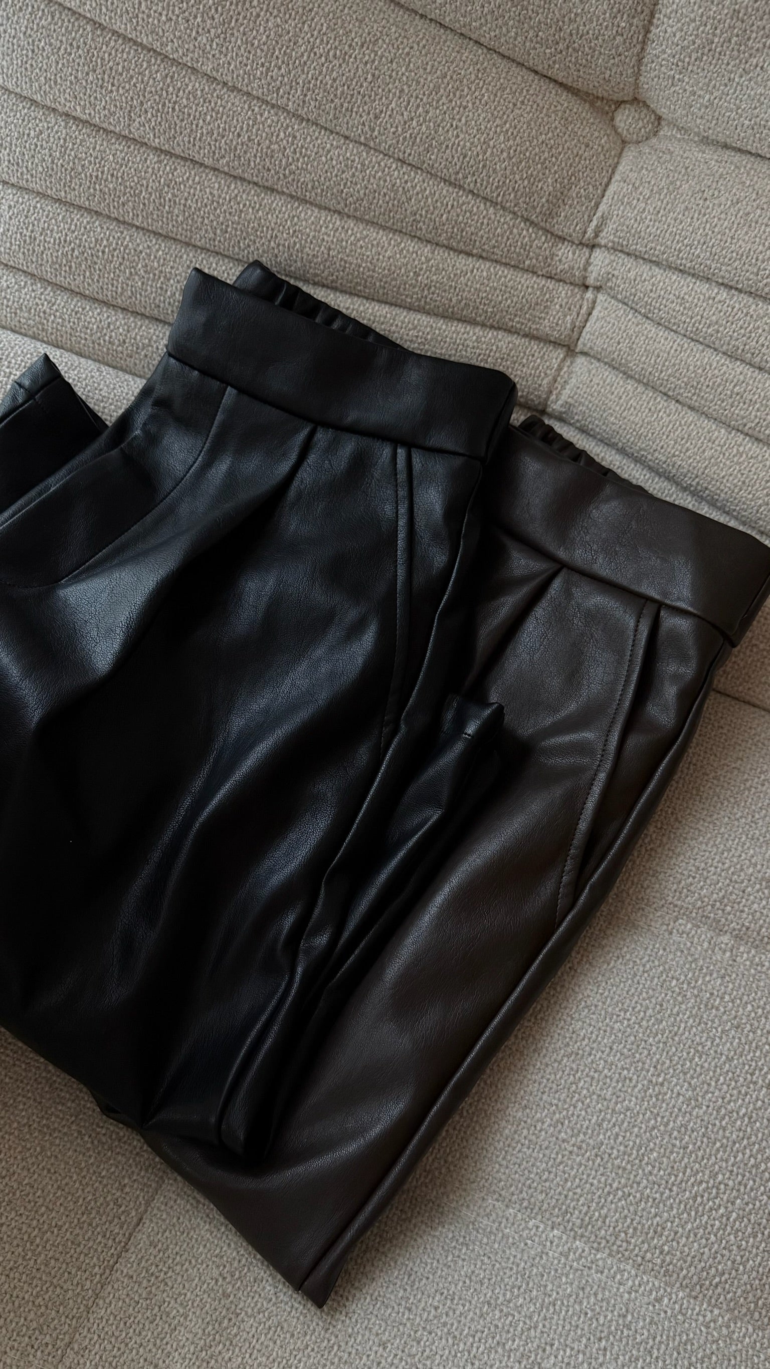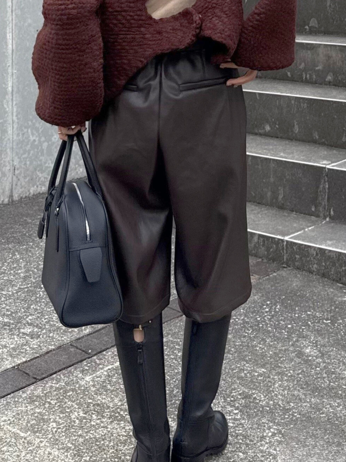 フロントタックが縦のラインを綺麗に見せる、フェイクレザーのガウチョパンツ。フェイクレザー特有の程よいマットなハリが履いた時のシルエットに程よく馴染みます。柔らかな素材感で動きが出やすく、ボリュームがありながらもすっきりとした印象に。スタイリングにモードなニュアンスを添える、シーズンレスで使える一本です。