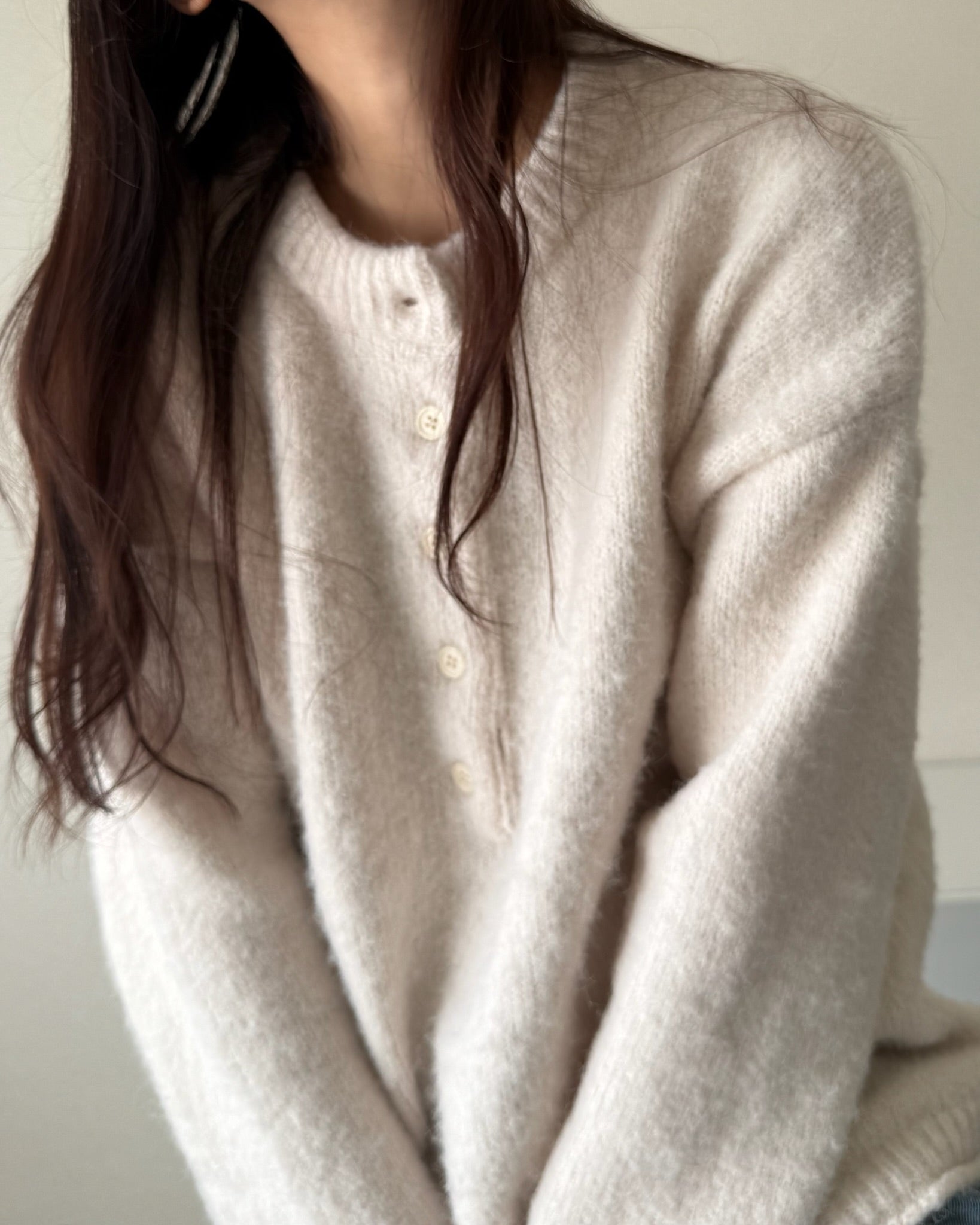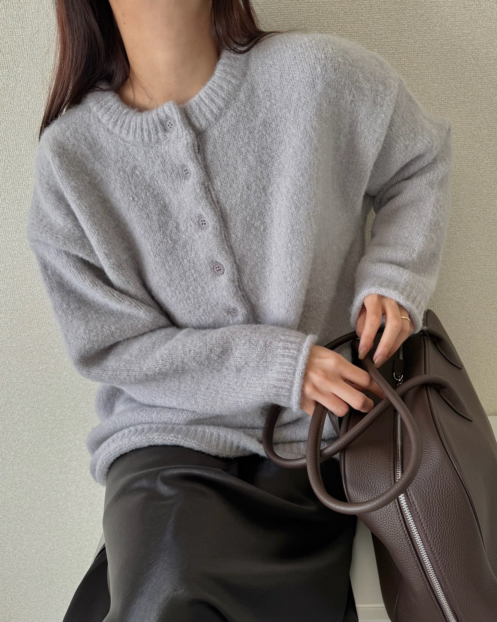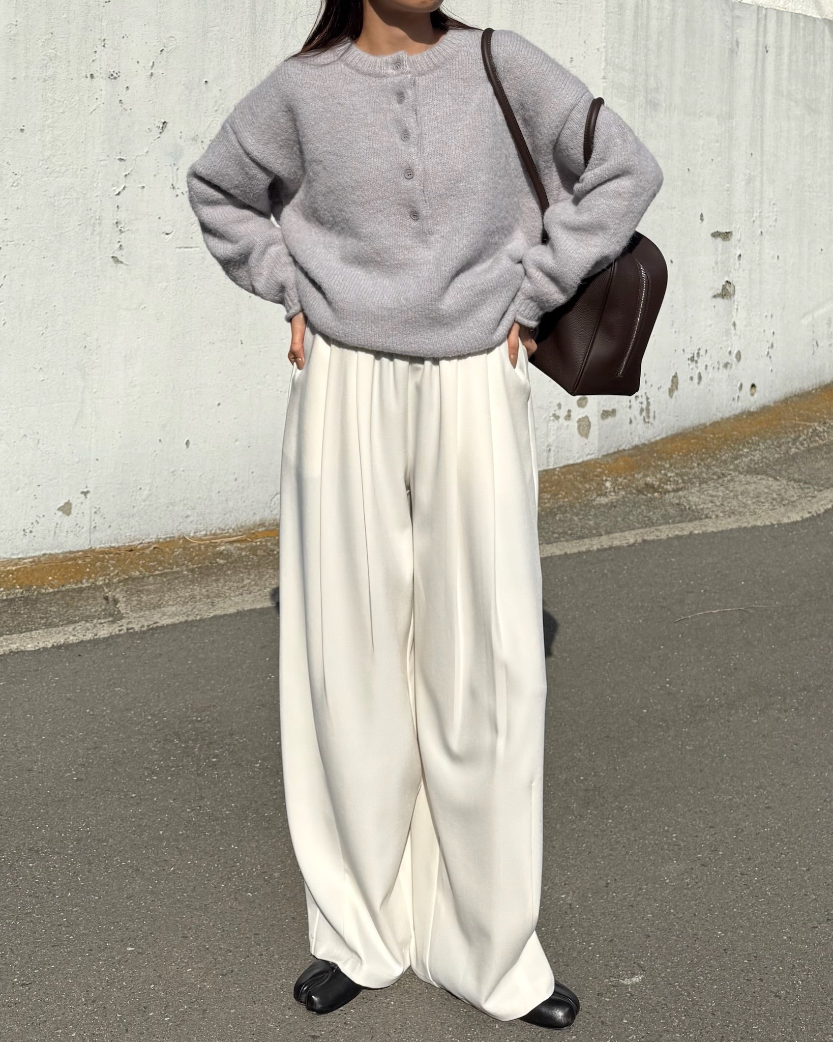 ゆるやかなシルエットが抜け感を生みつつ、ネックラインのディテールが全体を程よく締めてくれます。柔らかな風合いで着心地もよく、一枚でさりげない存在感を演出。