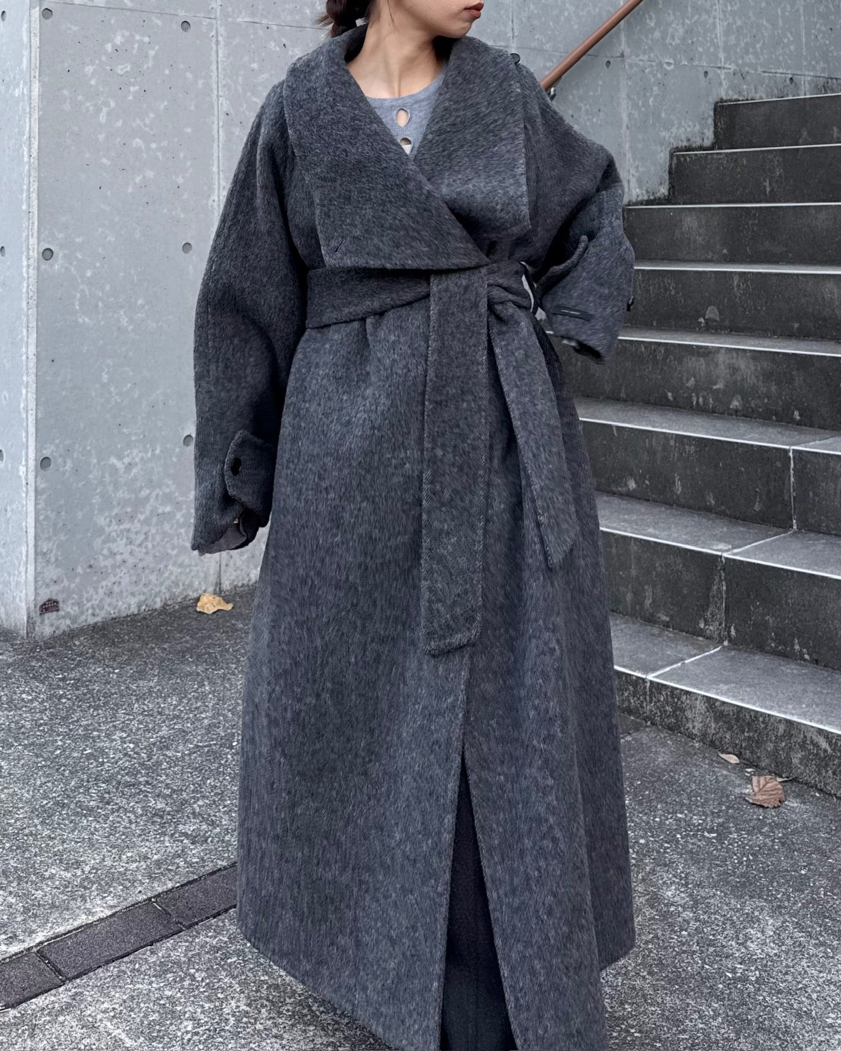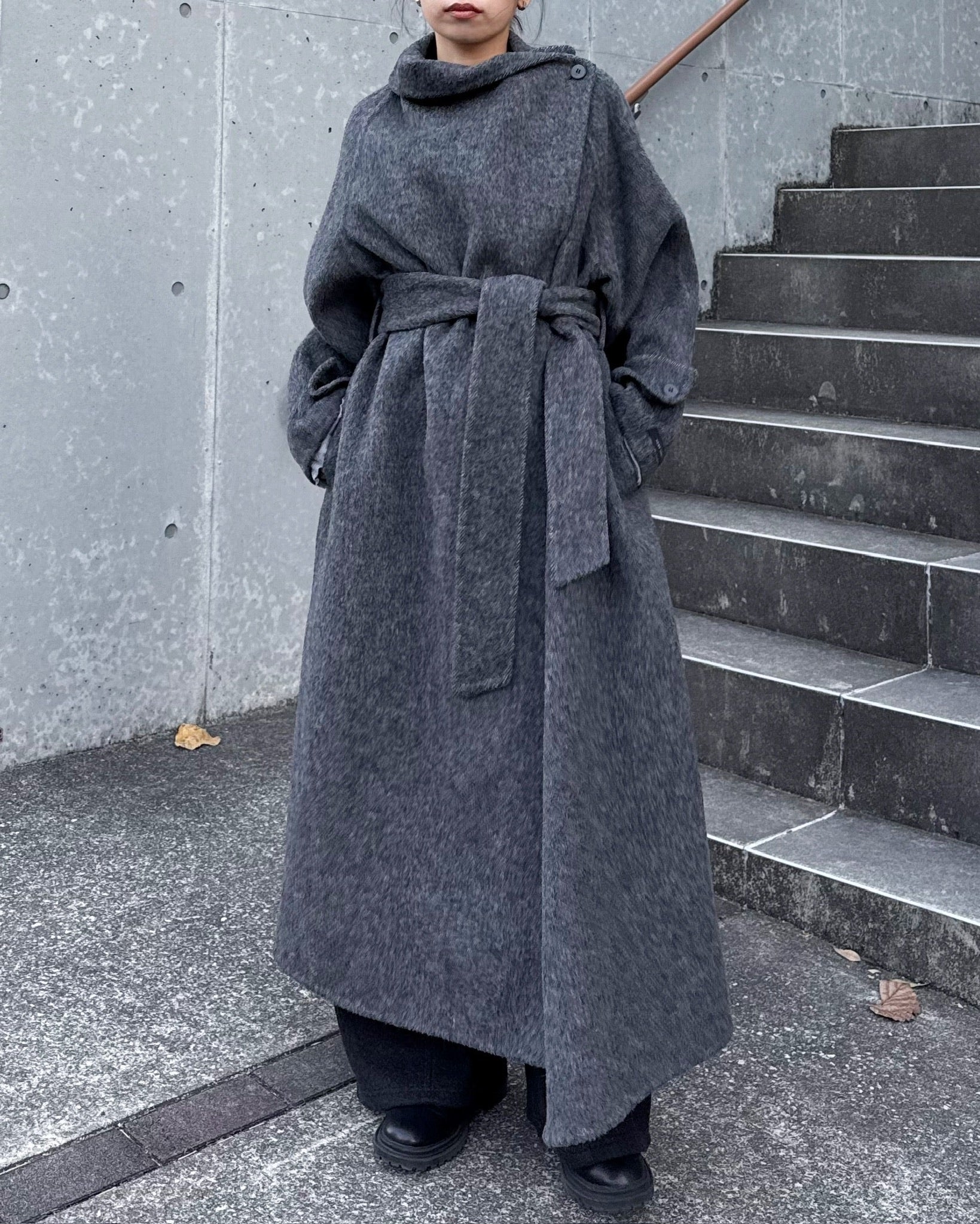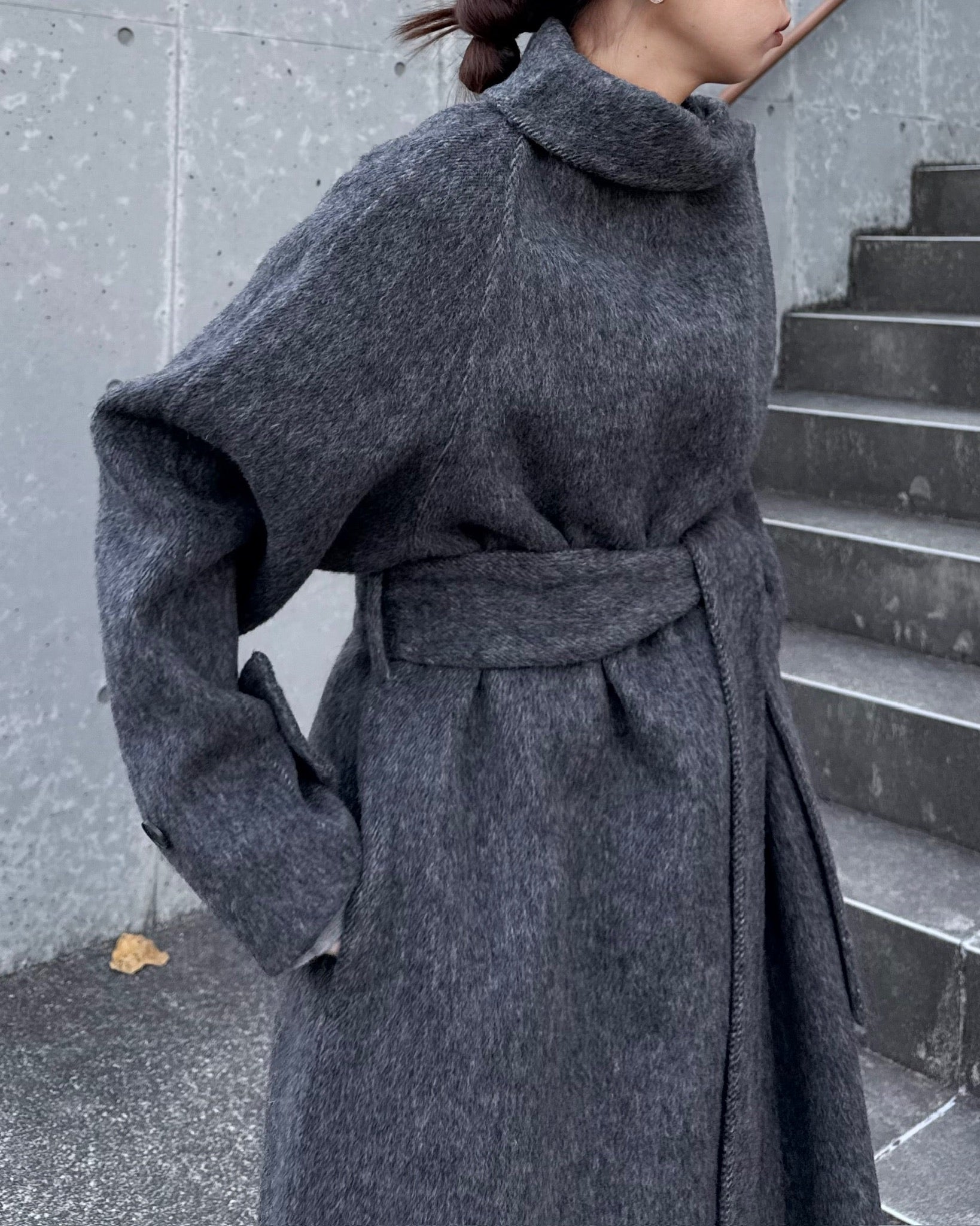 ウールスタンドカラーロングコート 2232
