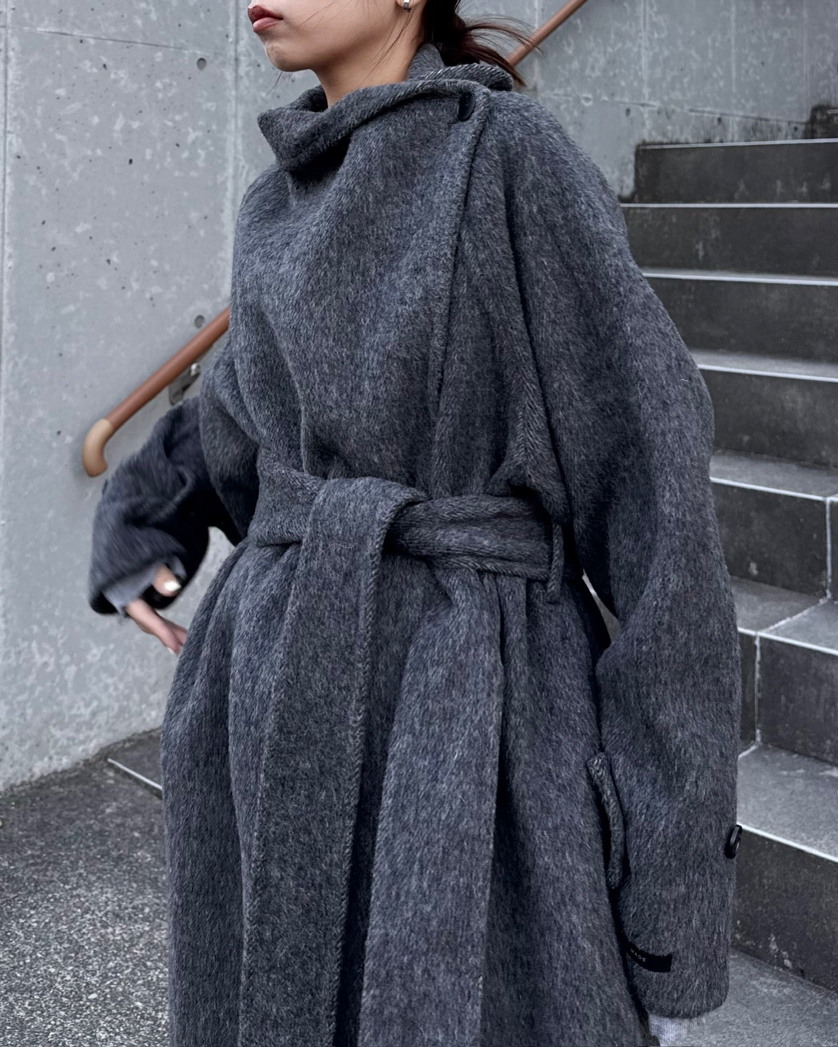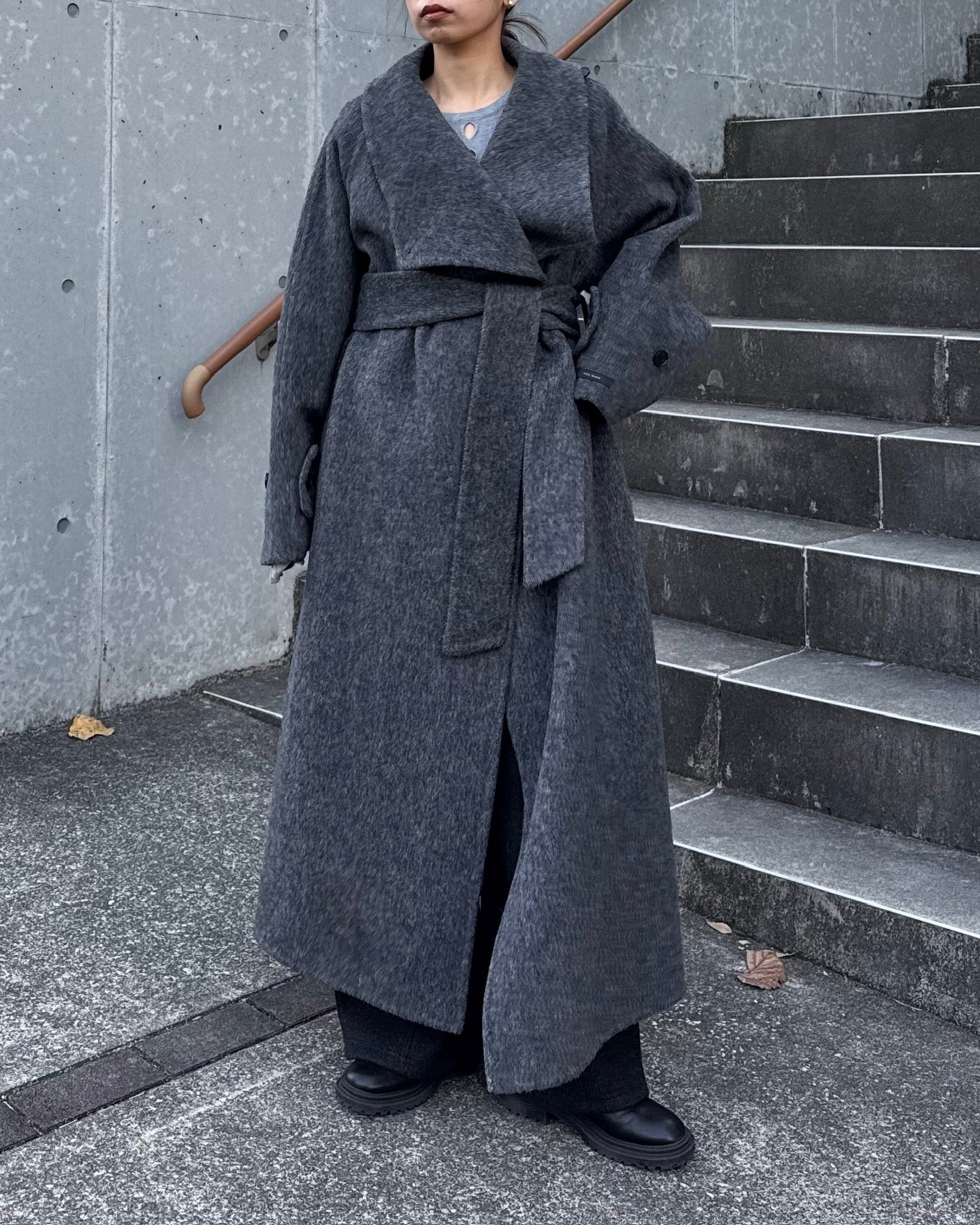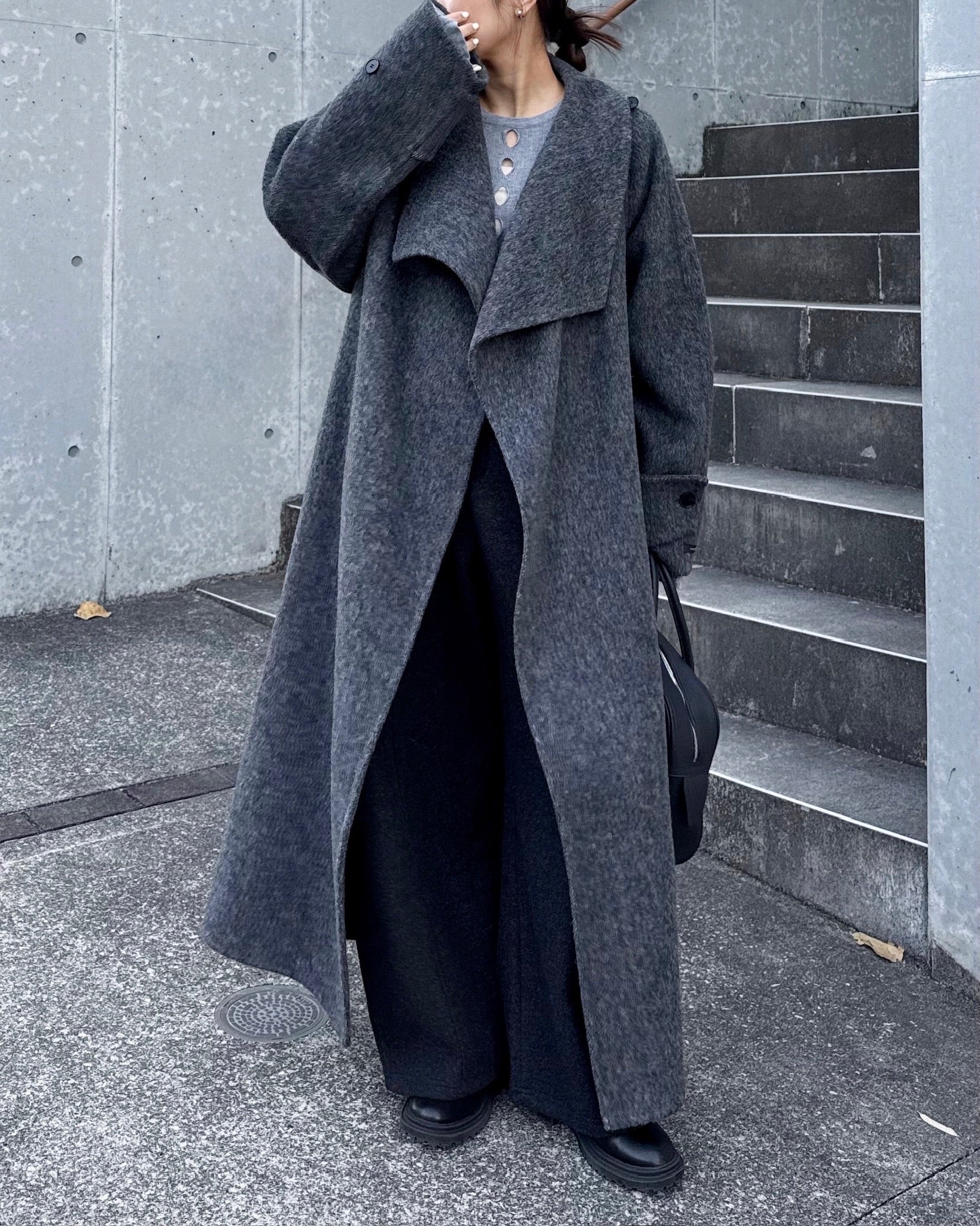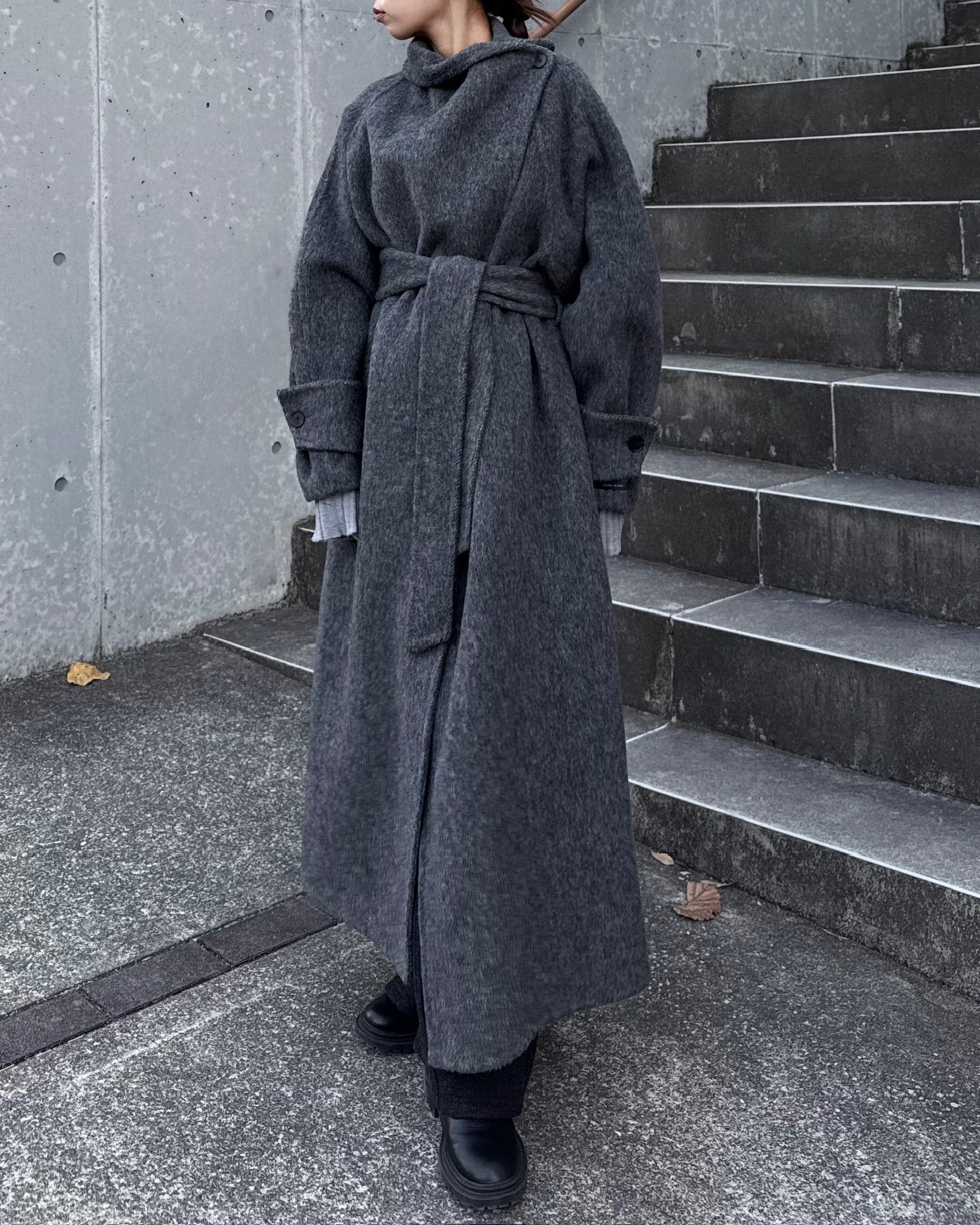 ウールスタンドカラーロングコート 2232