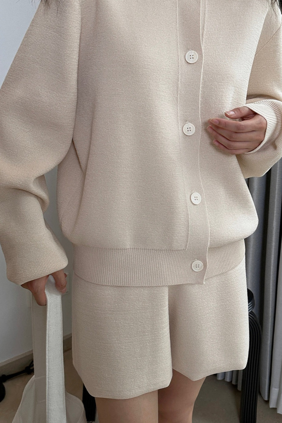 程よくハリのある編み地が魅力のニットショートパンツ。程よい厚みで身体のラインを拾いにくく、ストレスフリーな穿き心地に仕上げました。ウエストはすっきりとしたデザインで、トップスをインしてもバランスが良いスタイリングを楽しんでいただけます。同素材のニットカーディガンと合わせれば、統一感のあるセットアップスタイルを楽しめます。