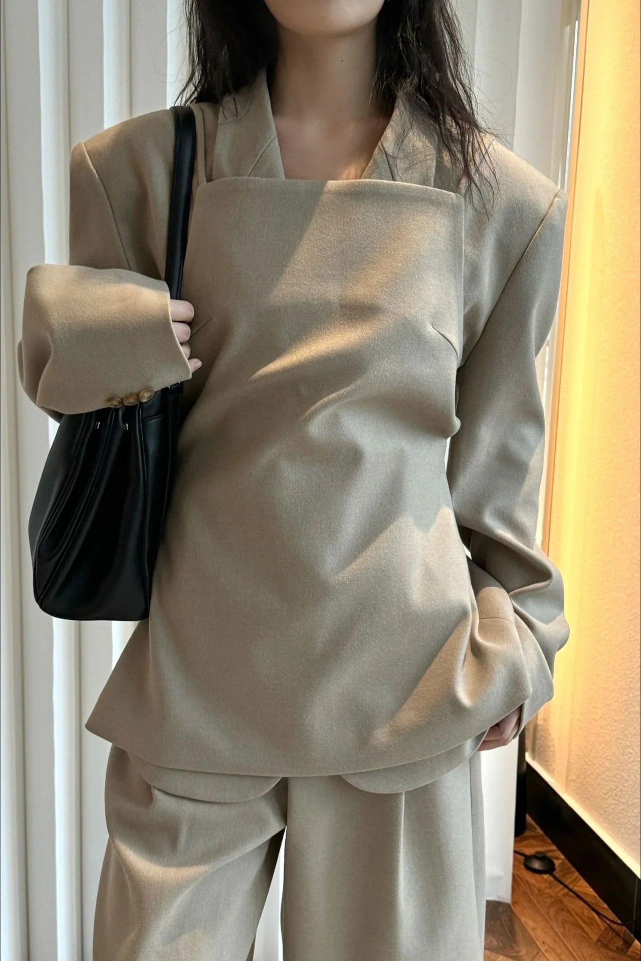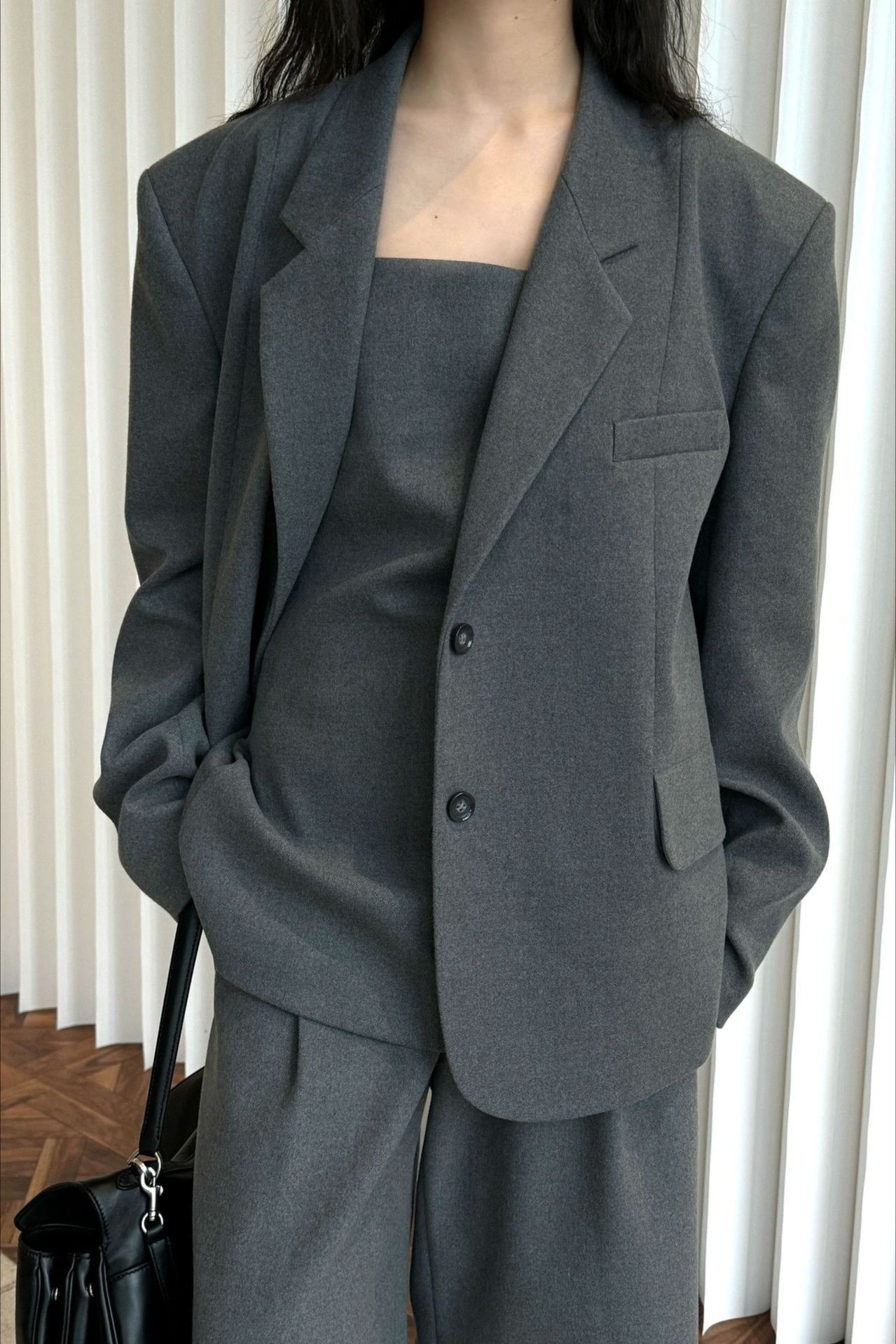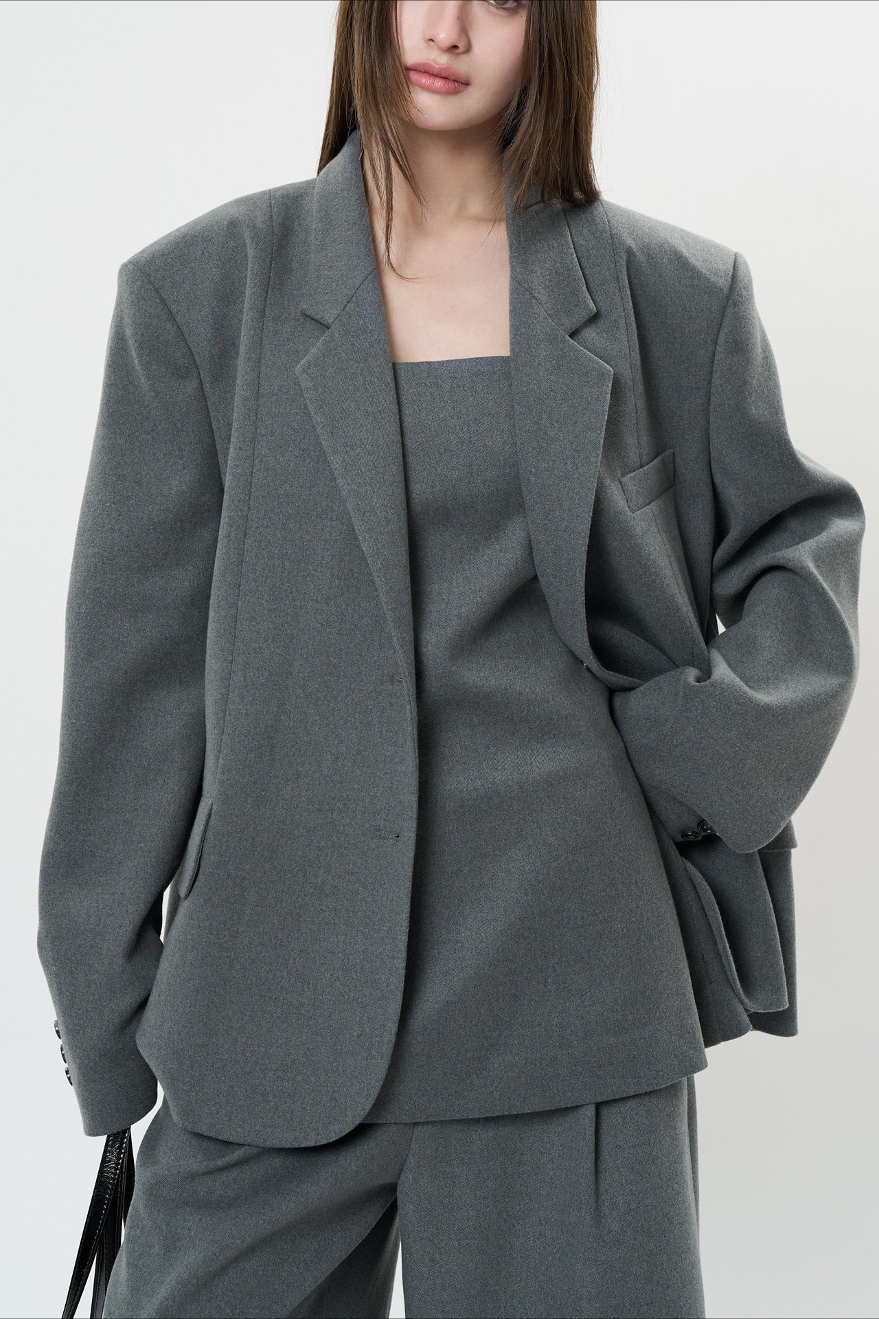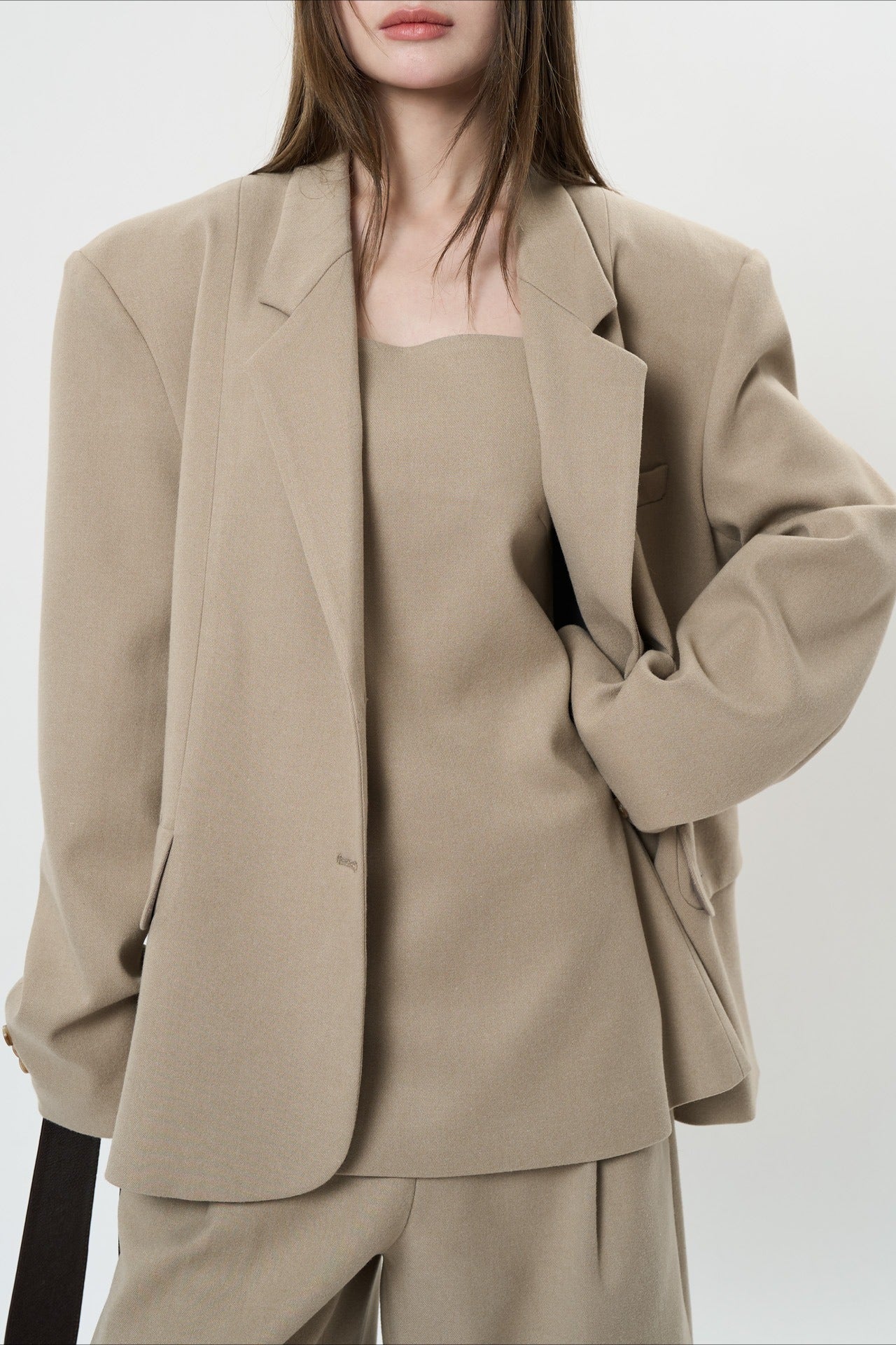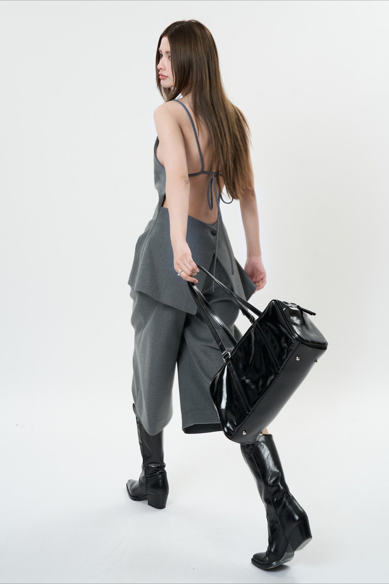 背中のリボンディテールが印象的なキャミソールベスト。フロントはミニマルに仕上げ、バックスタイルでさりげない女性らしさを演出します。程よく身体に沿うシルエットと落ち感のある素材が、大人の抜け感をプラス。単品でも、同素材ボトムスと合わせたセットアップでも洗練された着こなしが楽しめます。