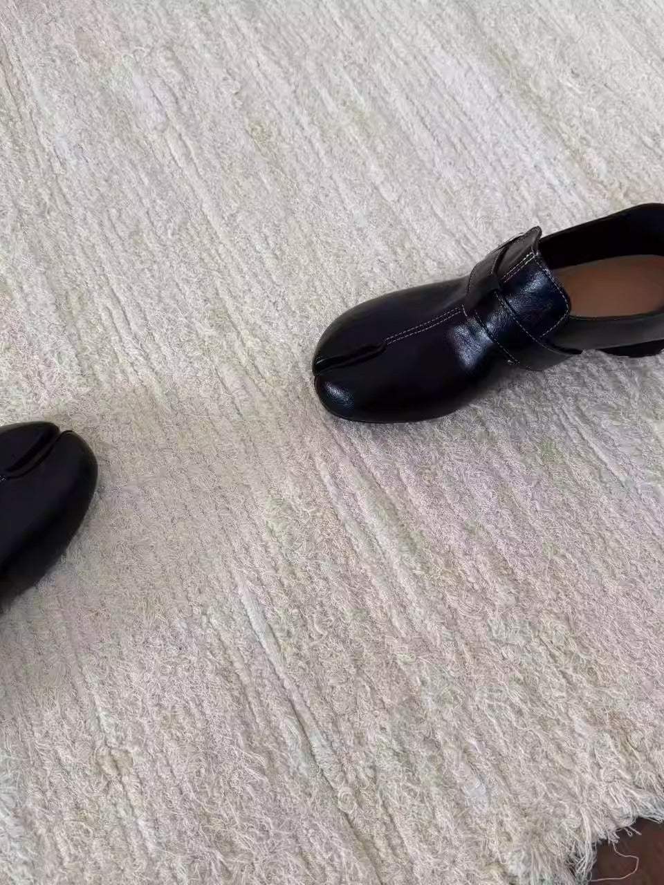 タビトゥデザインが印象的なローファー。個性的でありながらも、シンプルなブラックカラーでコーデに馴染みやすい一足です。程よいヒールで安定感があり、長時間の着用でも疲れにくいのがポイント。パンツスタイルにはもちろん、スカート合わせで抜け感をプラスするのもおすすめ。足元からさりげなくモード感を演出してくれます。
