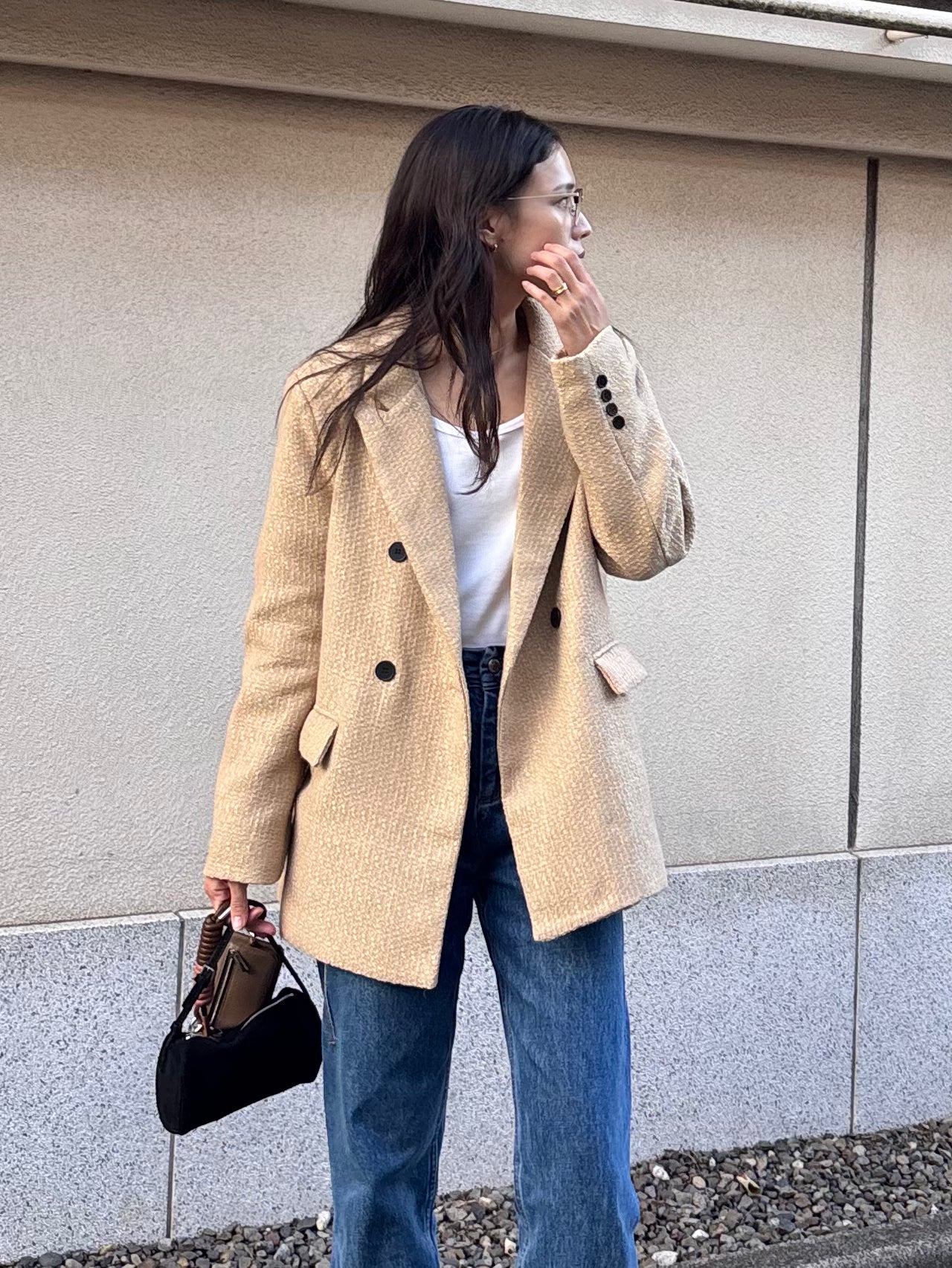 ミニマルなフォルムに上品な存在感を添えるマンニッシュツイードジャケット。ざっくりとした粗織りツイードが軽やかで、抜け感のあるシルエットを叶えます。ヒップが隠れる着丈でバランスが取りやすく、デニムからスラックスまで幅広く相性抜群。オンオフ問わずスタイリングに品をプラスしてくれる一着です。